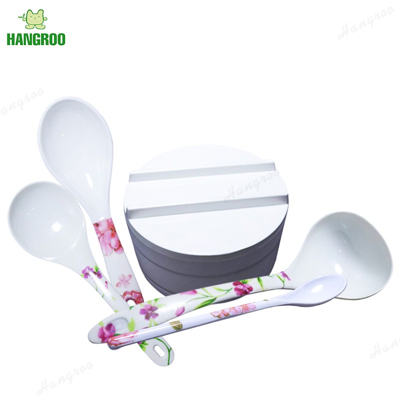 HANGROO K ช้อนเมลามีน ด้ามยาว ช้อน ทัพพี ช้อนซุป ช้อนตักข้าว ช้อนตักอาหาร ถ้วยเมลามีน พร้อมฝาปิด