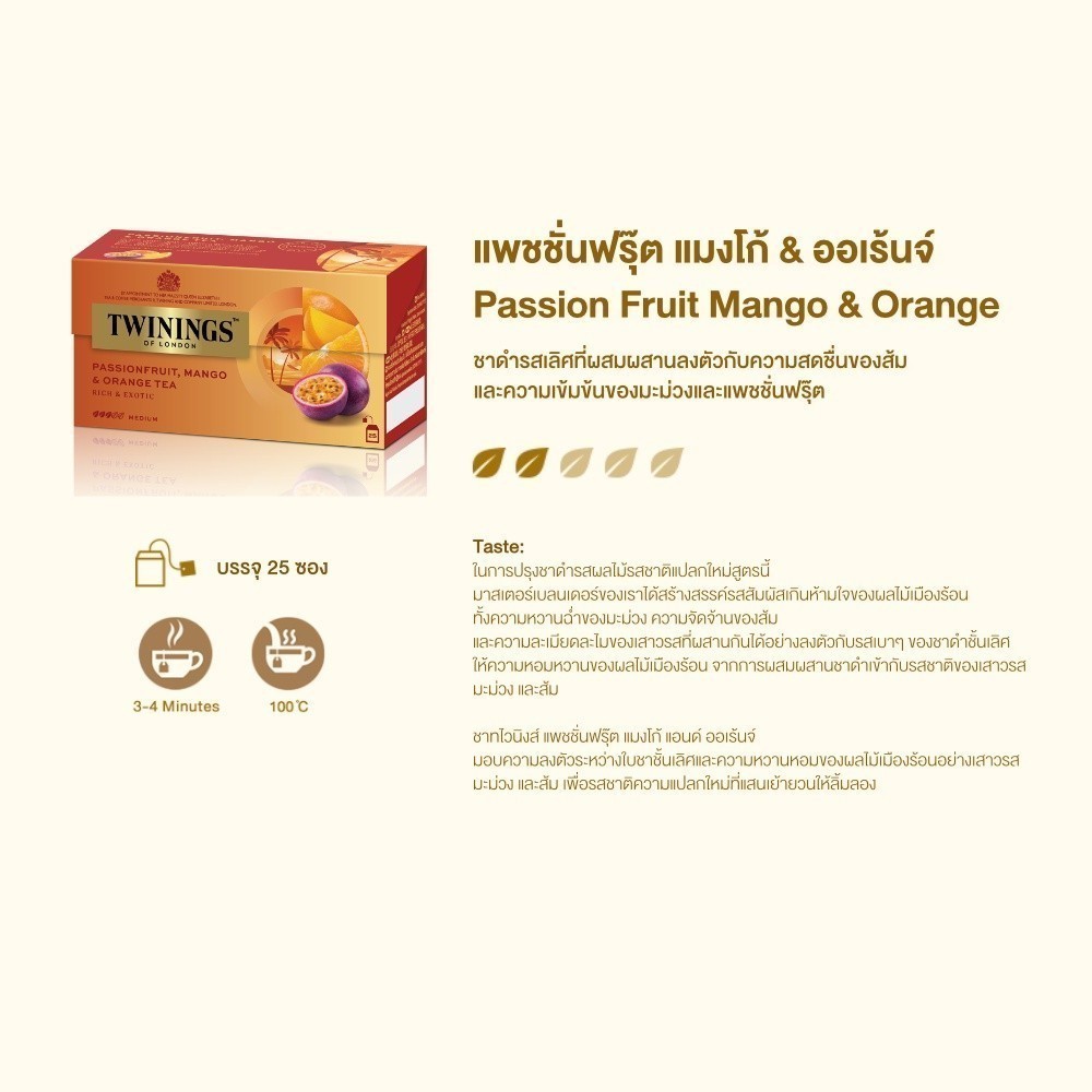 ทไวนิงส์ ชาแต่งกลิ่นแพชชั่นฟรุ้ต มะม่วงและส้ม ชนิดซอง 2 กรัม แพ็ค 25 ซอง Twinings Passion Fruit Mango & Orange ชาผลไม้