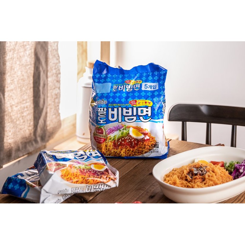 มาม่าเกาหลีสำเร็จรูปแบบแห้งรสเปรี้ยวหวาน บะหมี่เกาหลี บิบิมมยอน paldo bibimmyun ramen 130g 팔도 비빔면