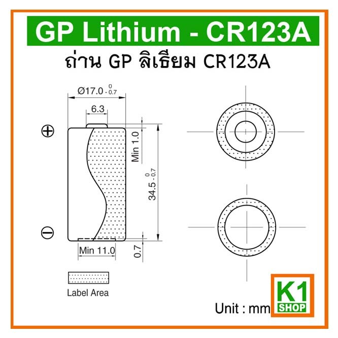 ถ่าน CR123A, GP Lithium, GP ลิเธียม CR123A