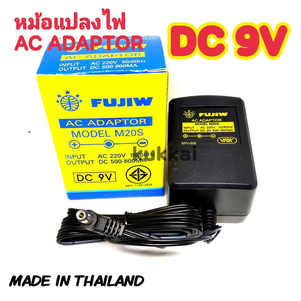 FUJIW AC Adaptor MODEL M20S DC 6V,9V,12V +ใน -นอก IN AC220V,OUTPUT DC500-800MA อะแดปเตอร์ หม้อแปลง positive polarity