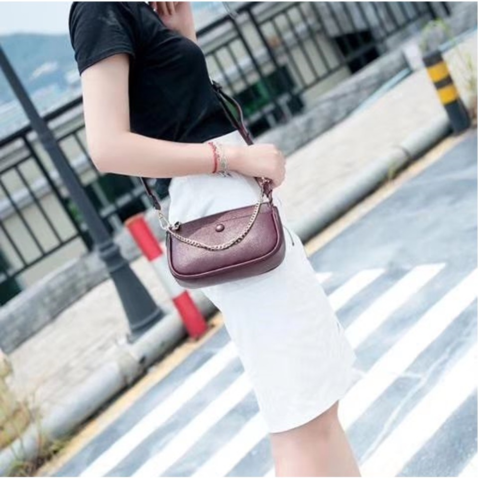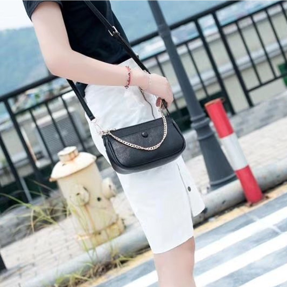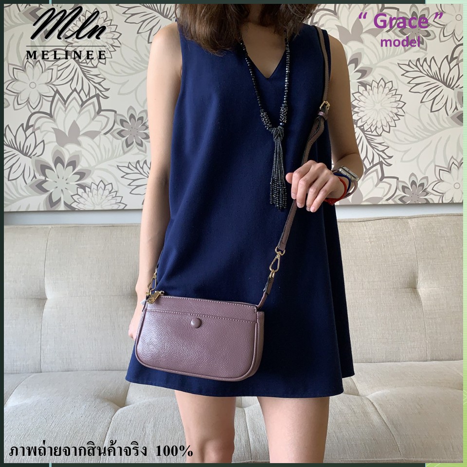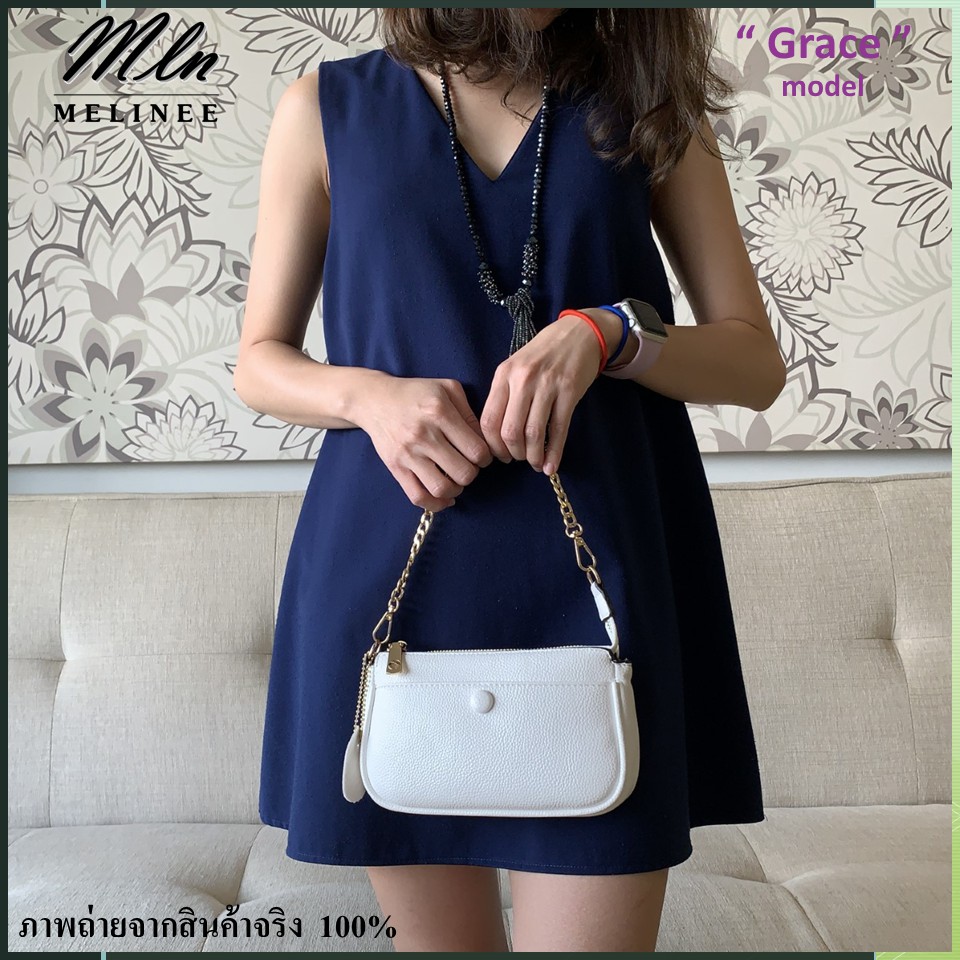 MLN bags กระเป๋าถือใบเล็ก รุ่นGrace สายถือเป็นโซ่ มีสายสะพายหนัง size 21*6*12 cm