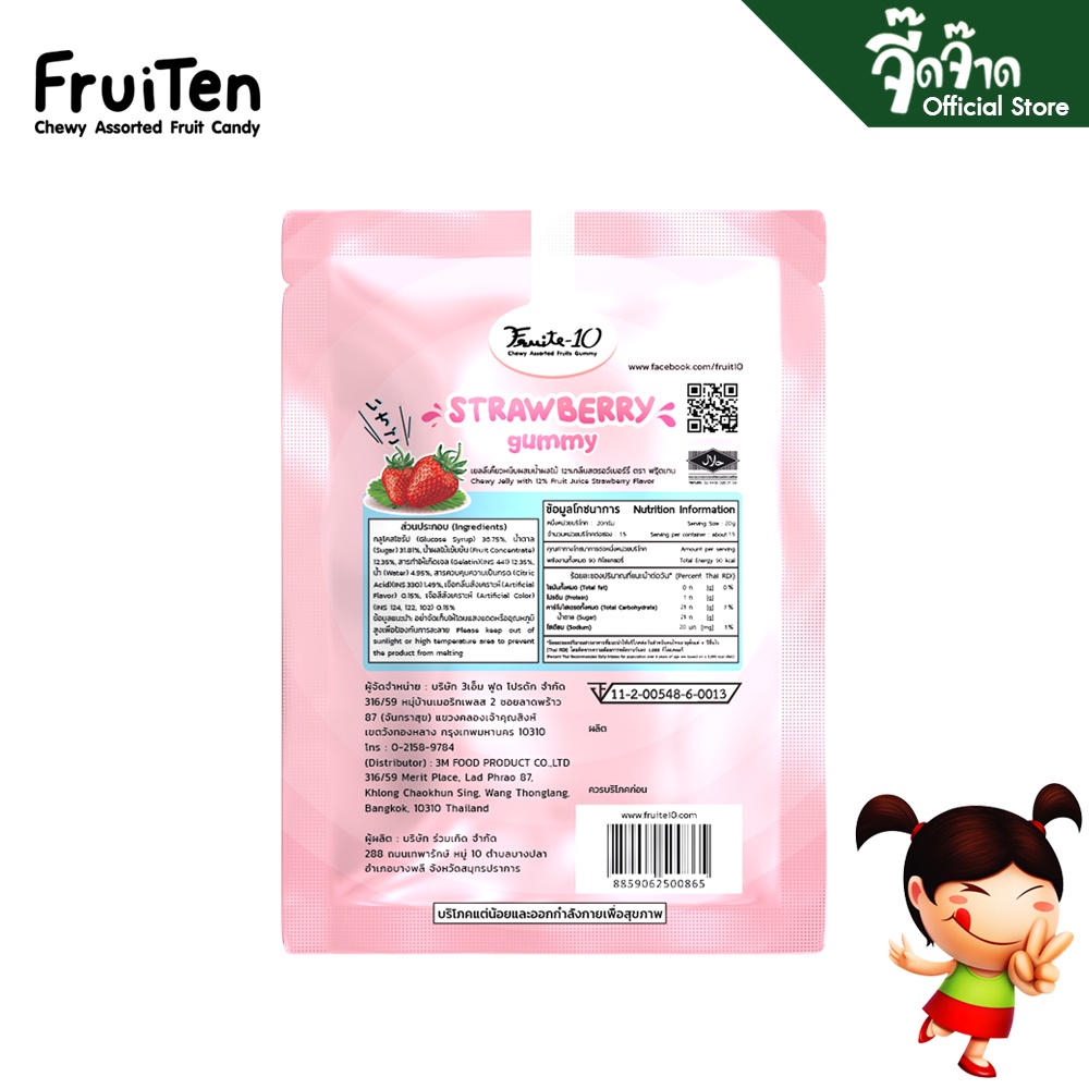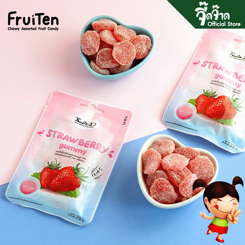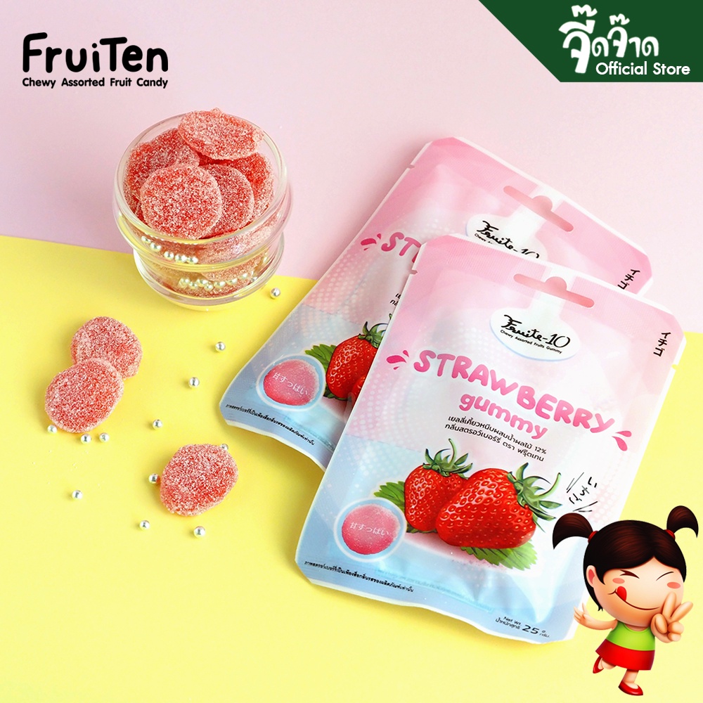 FruiTen เยลลี่เคี้ยวหนึบ กลิ่นสตรอเบอร์รี่ 25 กรัม (2 ซอง) ขนาด 50 กรัม