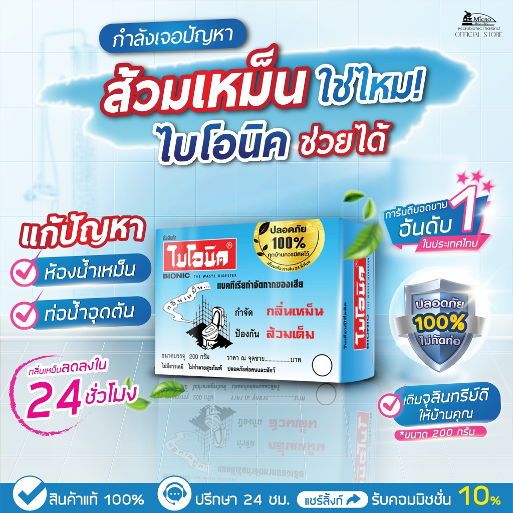 ไบโอนิค 200กรัม จุลินทรีย์ใส่ส้วม กำจัดกลิ่นเหม็น ส้วมเต็ม แก้ท่อตัน ผงล้างท่อ ชักโครกตัน Bionic