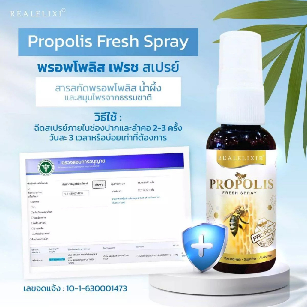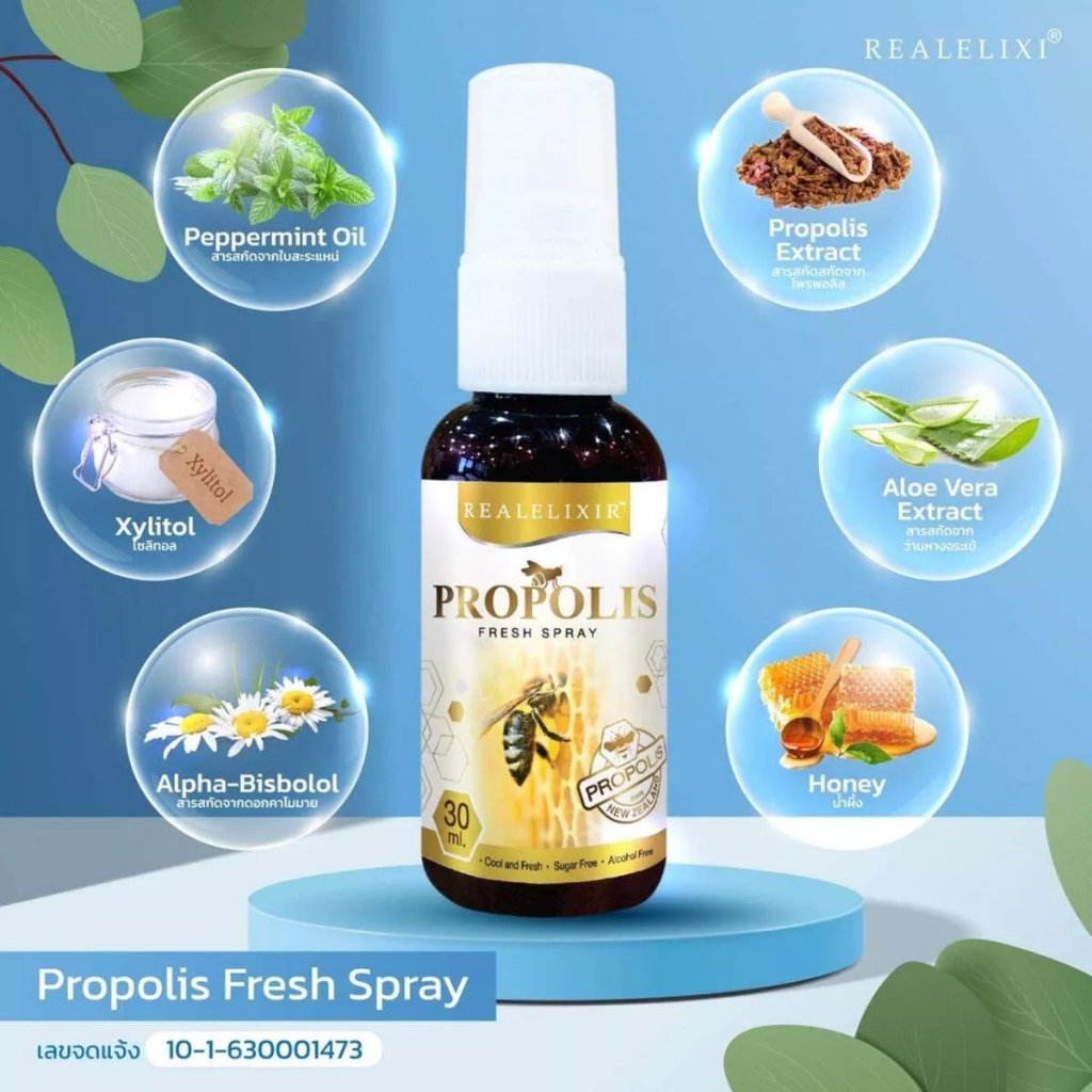 โพรโพลิส สเปรย์ Real elixir propolis fresh spray 30 ml propoliz โพรโพลิซ ฆ่าเชื้อ ในช่องปากและลำคอ ดับกลิ่นปาก ชุ่มคอ