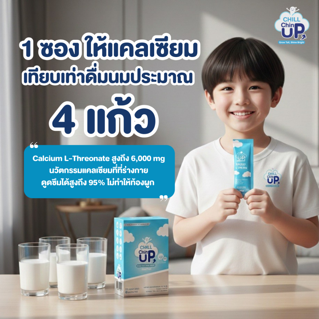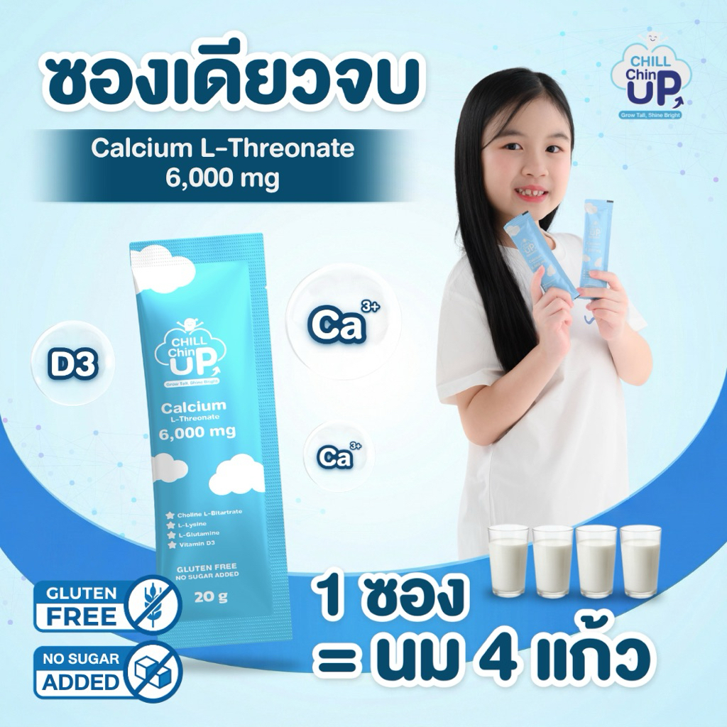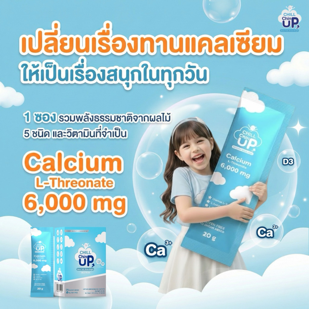 [1ซอง] เจลลี่แคลเซียม L-Threonate 6,000 mg /1 ซอง เท่ากับนม4 แก้ว และ ดูดซึมได้ถึง 95%-Chill Chin UP Jelly Plus