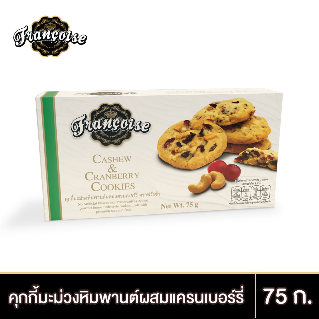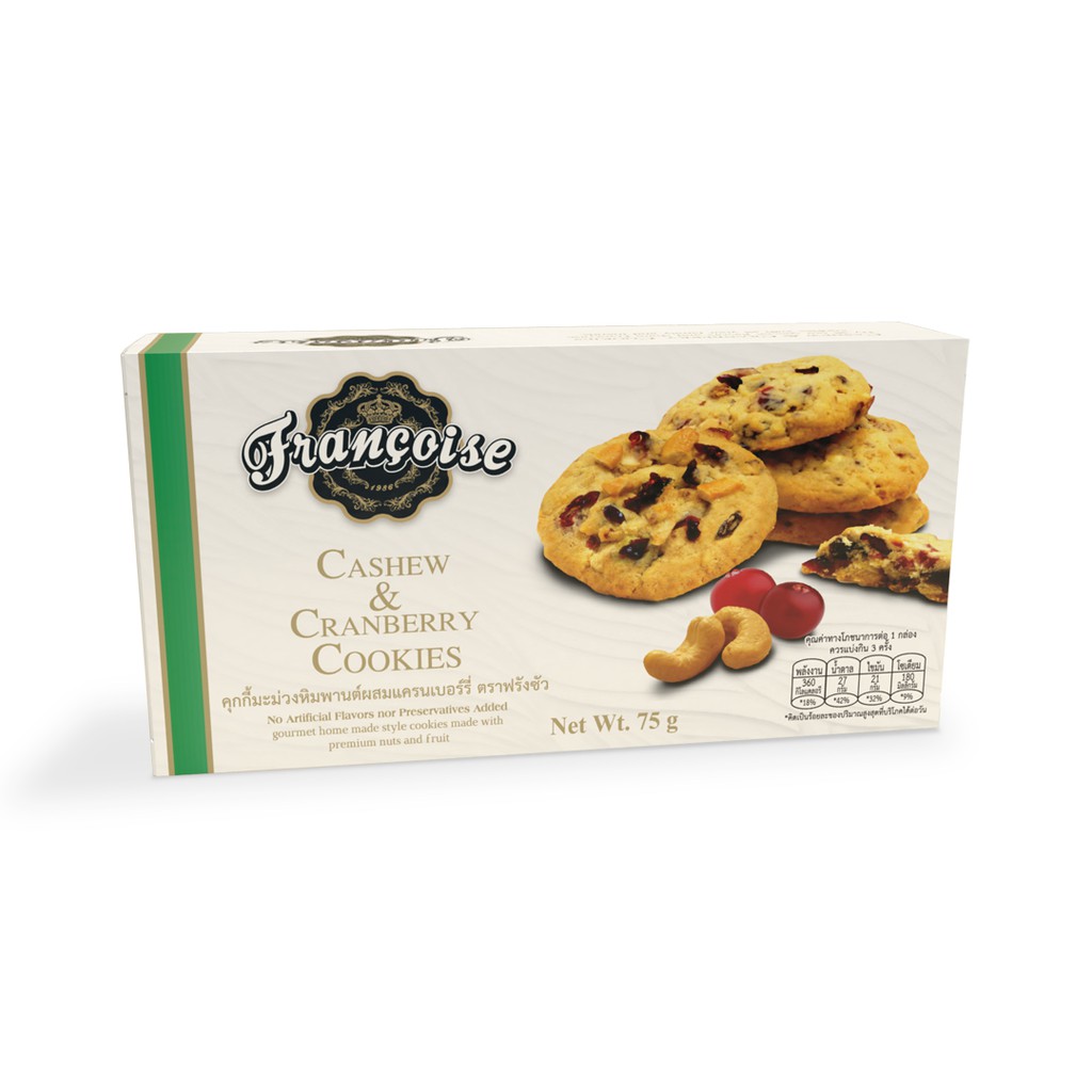 ฟรังซัว คุกกี้มะม่วงหิมพานต์ผสมแครนเบอร์รี่ 75 ก. CASHEW & CRANBERRY COOKIES (FRANCOISE BRAND) 75 g.