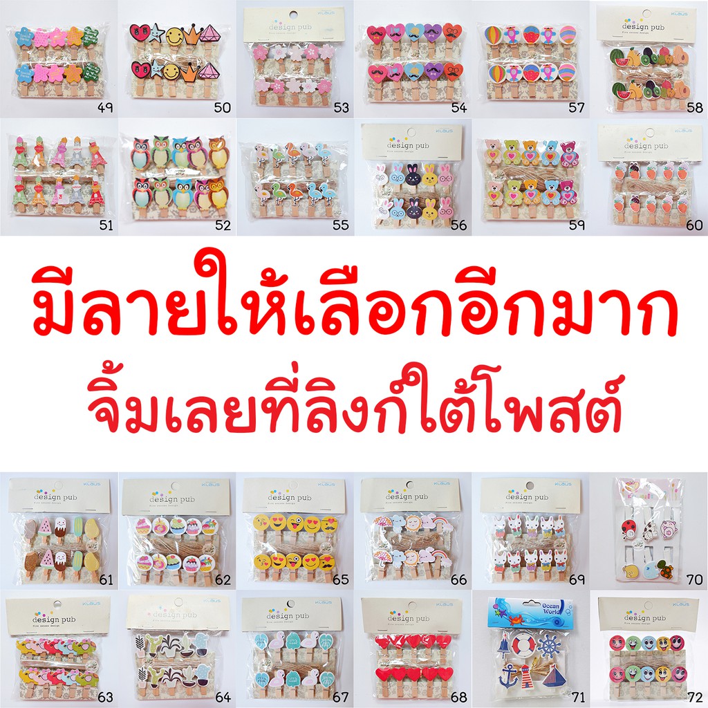 รวมตัวหนีบไม้(1) 48 ลาย เลือกแบบได้ ไม้หนีบ ที่หนีบ คลิปหนีบ ไม้หนีบรูป ตัวหนีบไม้ กิ๊บไม้ ตัวหนีบ