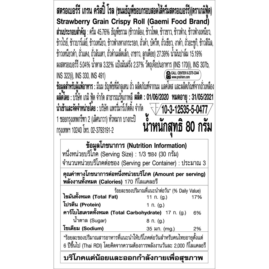 เกมี่ สตรอเบอร์รี เกรน คริสปี้ โรล 80 กรัม / Kemy Strawberry Grain Crispy Roll 80 g.
