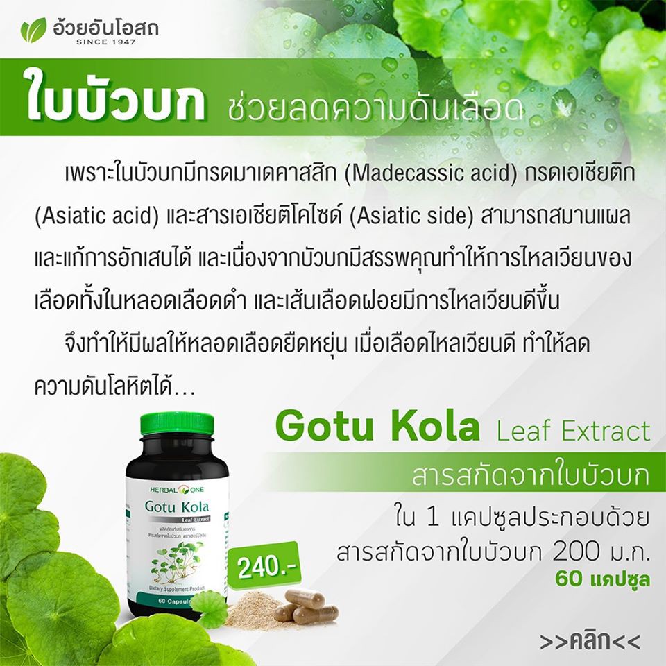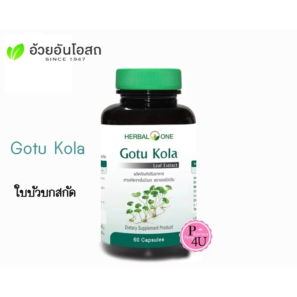 แท้พร้อมส่ง!! Herbal One Gotu Kola เฮอร์บัล วัน ใบบัวบกสกัด (อ้วยอันโอสถ) บรรจุ 60 แคปซูล #5547