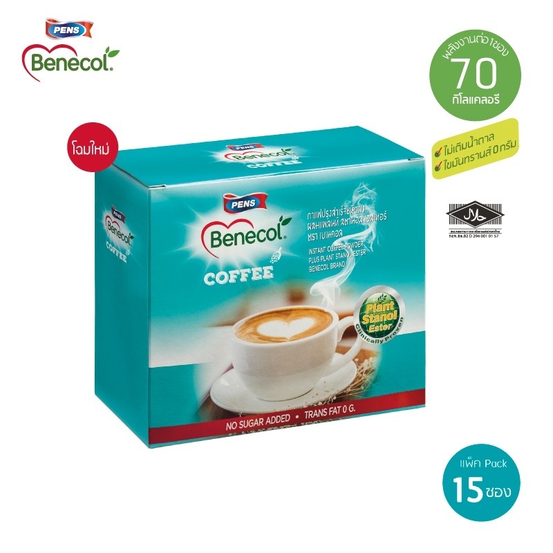 Member Benecol (EXP11/26) เบเนคอล กาแฟผสมแพลนท์สตานอล 15 ซอง 2กล่อง