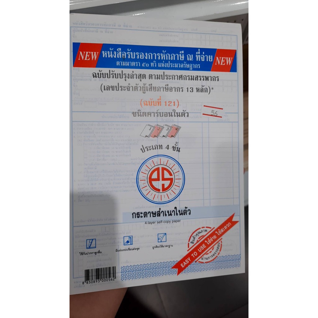 (KTS)หนังสือรับรองหักภาษี ณ ที่จ่าย พูนสินสมบูรณ์ ชนิดคาร์บอนสำเนาในตัว ประเภท 4 ชั้น