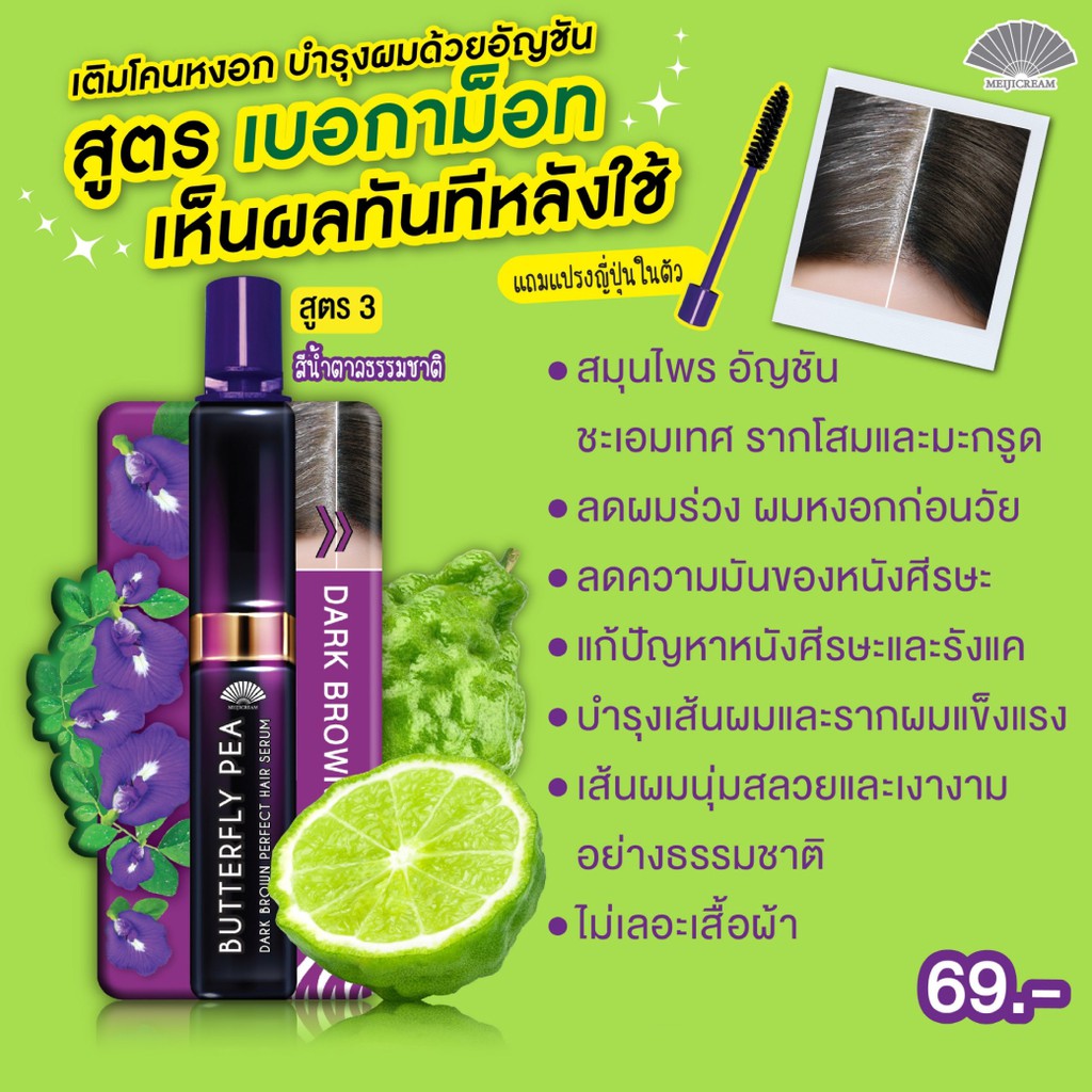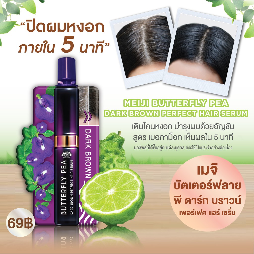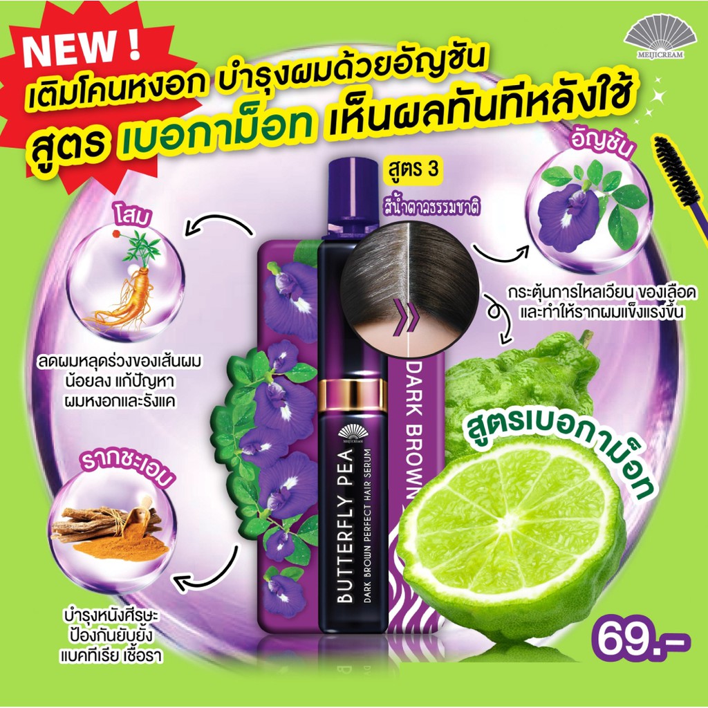 เมจิ อัญชัน บัตเตอร์ฟลาย พี ดาร์ก บราวน์ เพอร์เฟค แฮร์ เซรั่ม3ก.MEIJI BUTTERFLY PEA DARK BROWN SERUM