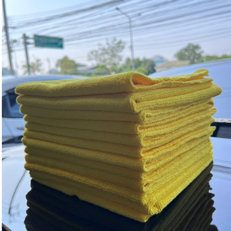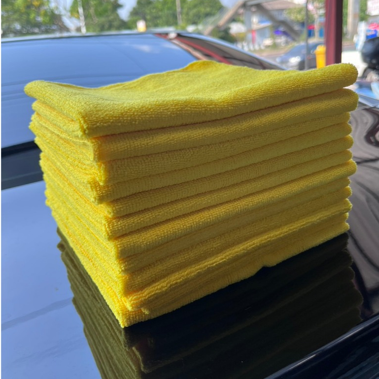 ผ้าไมโครไฟเบอร์ไร้ขอบสีเหลืองขนสั้นสองด้าน ขนาด 40*40 ซม.300GSM
