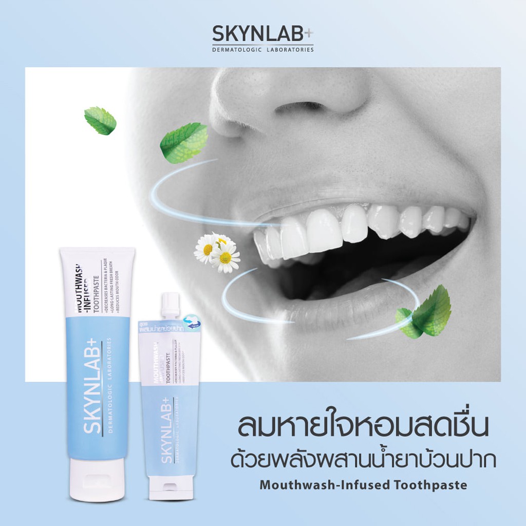 (ขนาดพกพา) ยาสีฟัน / น้ำยาบ้วนปาก สกินแล๊ป SKYNLAB+ Mouthwash Infused / Premium Fresh Smile Toothpaste 12/15 g.