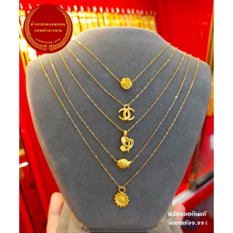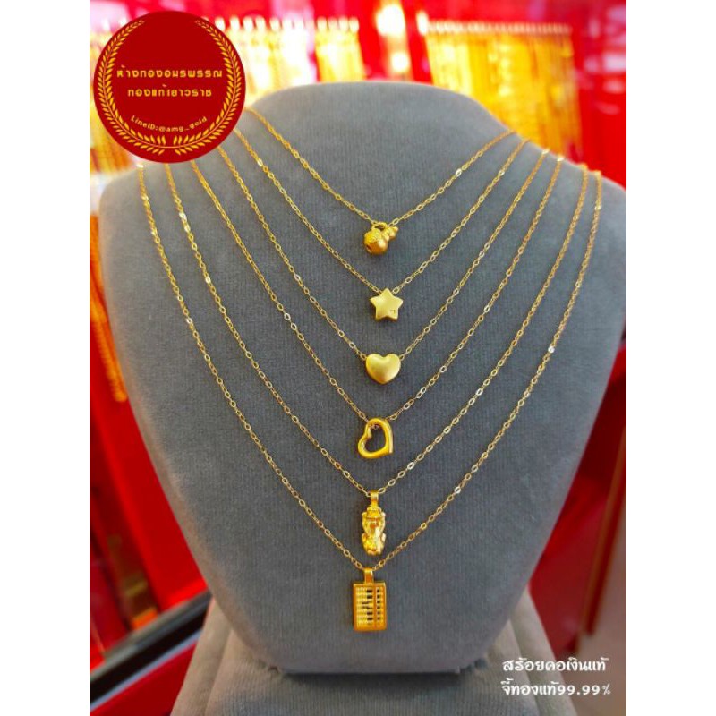สร้อยคอทองแท้75% พร้อมจี้ทองแท้ 99.99% หนัก 0.35-0.4 กรัม มีลายให้เลือก 17 เเบบ