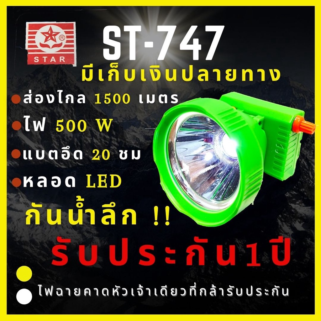 [รับประกัน 1 ปี สินค้าใหม่] ST-747 ไฟฉายคาดหัว 500W ดำน้ำ หน้ากว้าง8เซน แบตญี่ปุ่น ส่องไกล2000เมตร ดำน้ำ สเปคเทพราคาคุ้