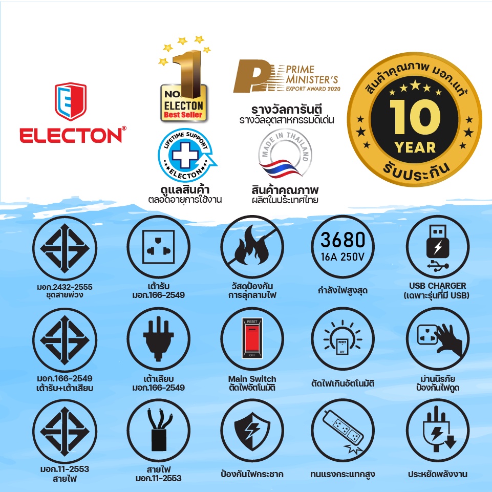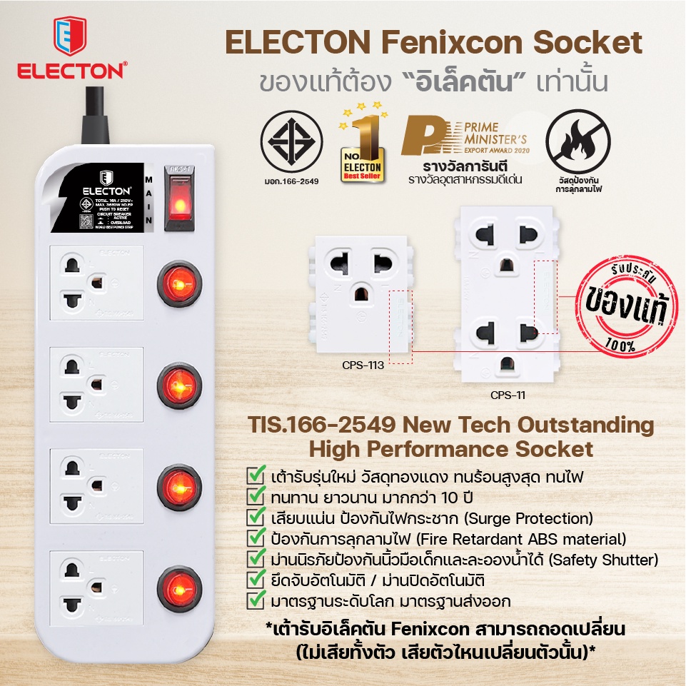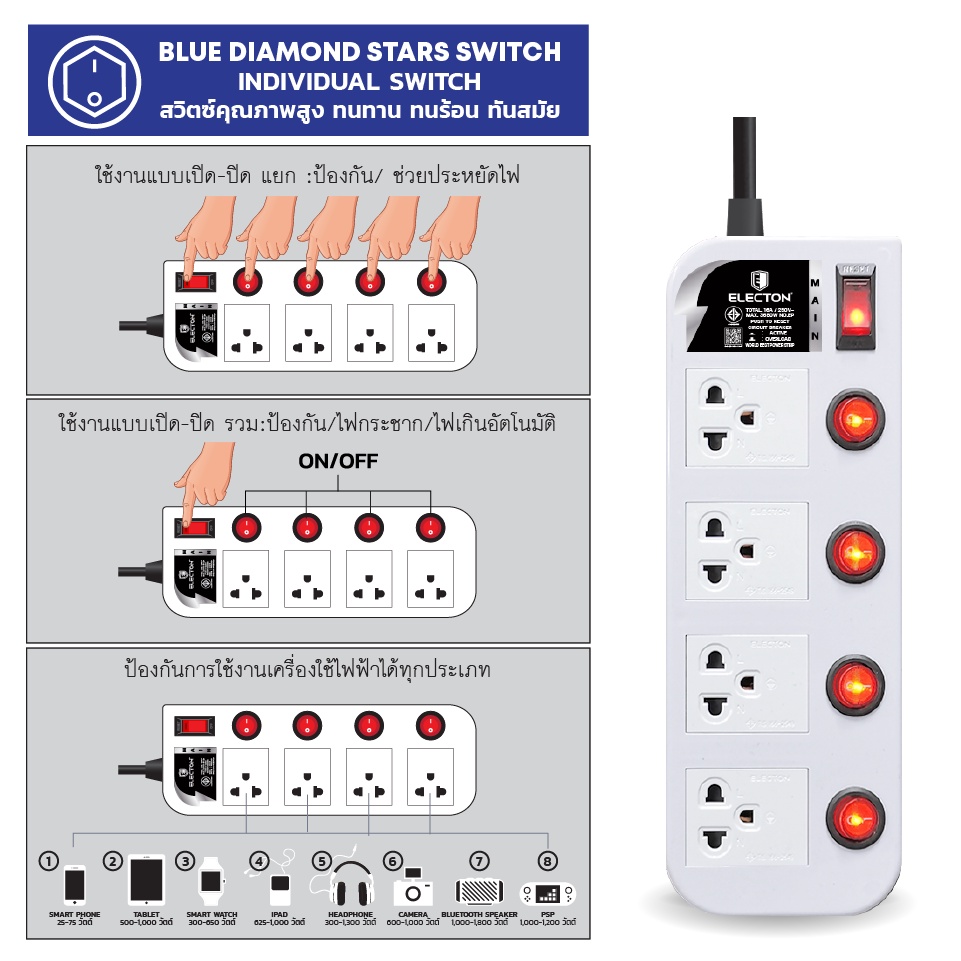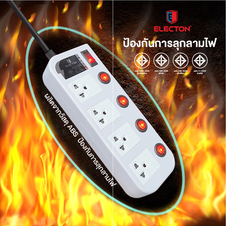 ELECTON อิเล็คตัน ปลั๊กไฟ มอก.2432-2555 รุ่น EP-GS4 16A (สีขาว, สีดำ)