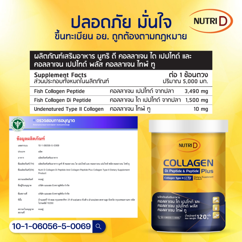 Nutri D Collagen Di Peptide & Peptide Plus Collagen Type II 120 g.