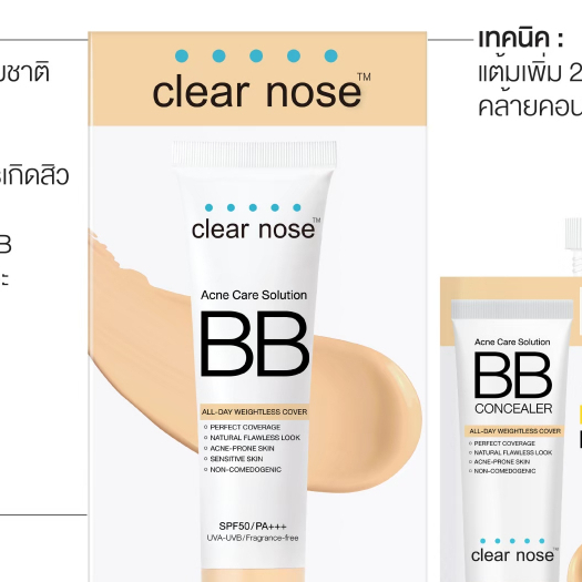 [โปรแรง]บีบีเคลียร์โนส BB Clear Nose BBสิว SPF50+ PA+++ แบบซอง 4g ปกปิดดี ไม่อุดตัน 1ซอง(BBS)