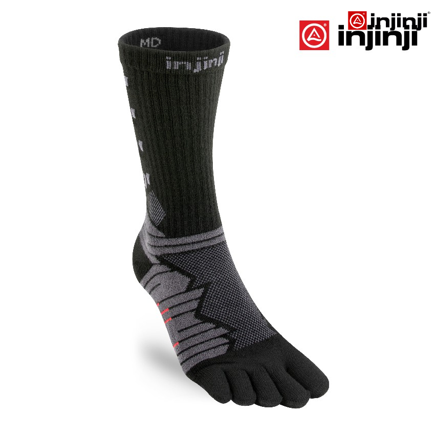 INJINJI ถุงเท้าวิ่งแยกนิ้ว รุ่นวิ่งอัลตร้า กลางแจ้ง ULTRA RUN CREW OBSIDIAN ยาวครึ่งแข้ง สีดำเทา