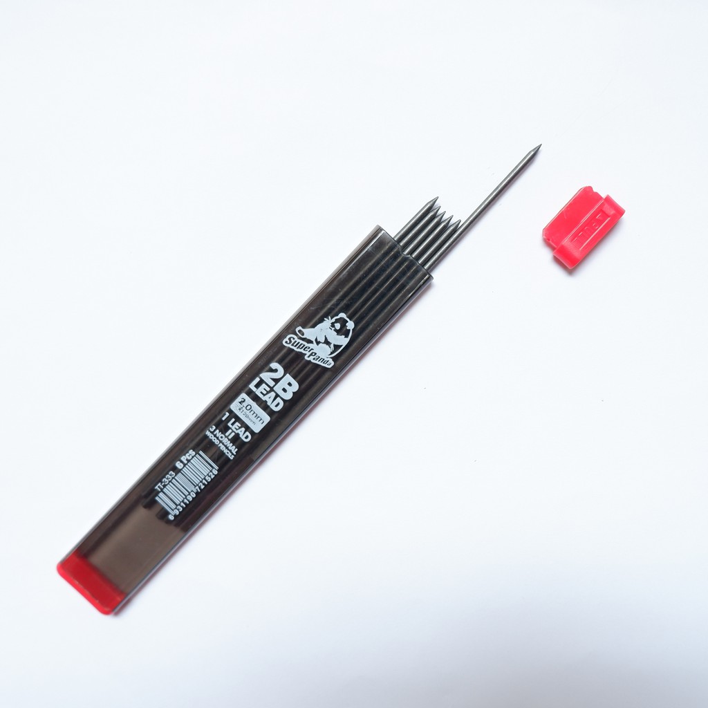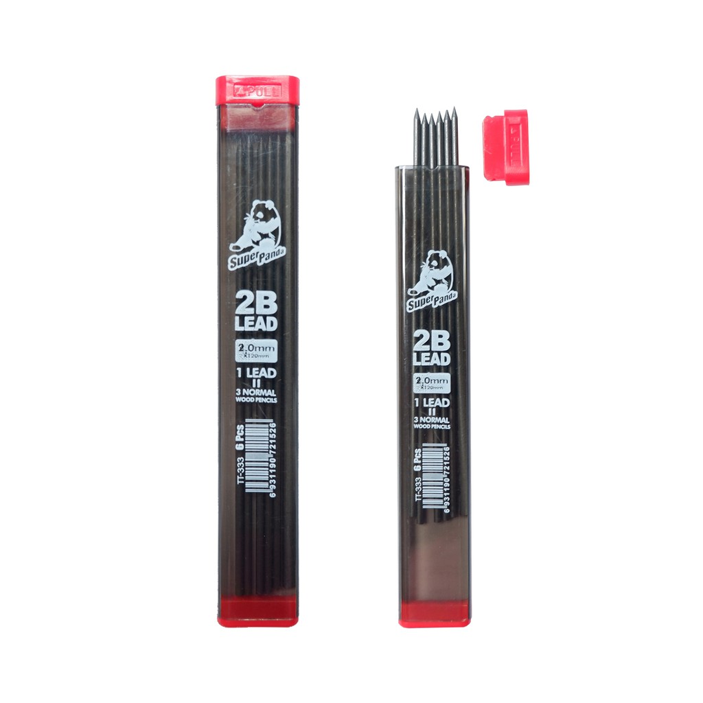 ไส้ดินสอ 2B 2มิล (ไส้กลม) Super panda (GENVANA) 6 ไส้ ยาว 12 ซม. (333) ไส้ดินสอกด ไส้ดินสอ2.0มม.