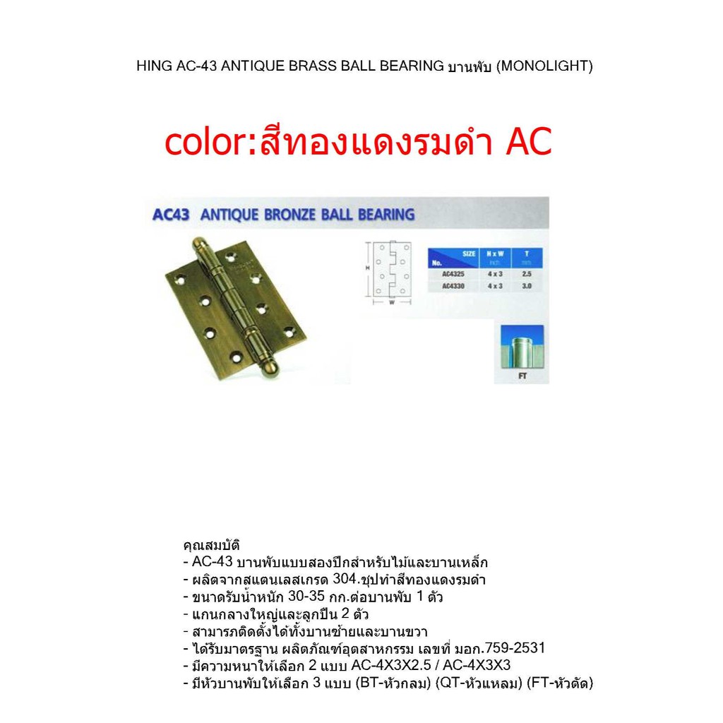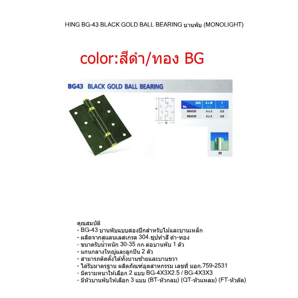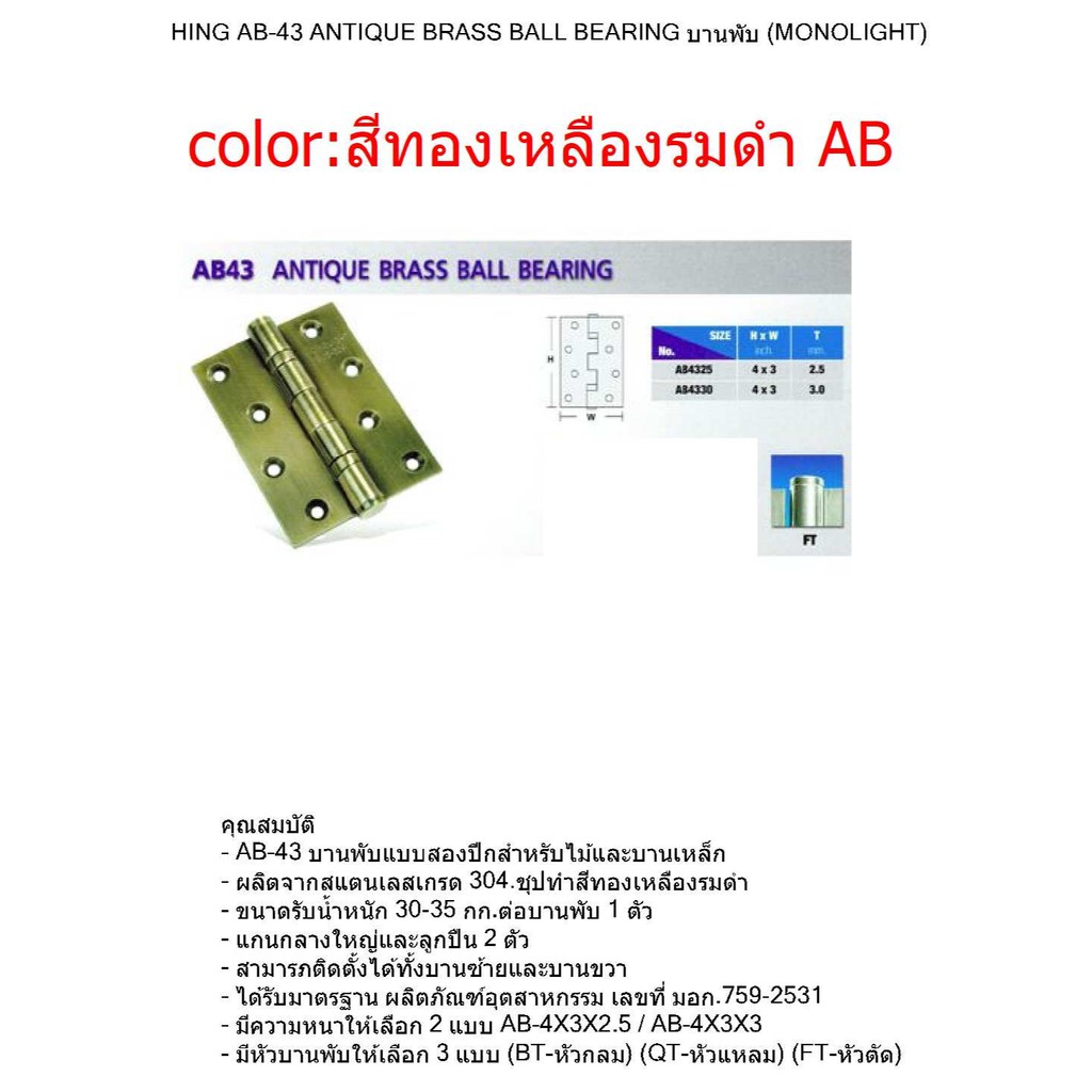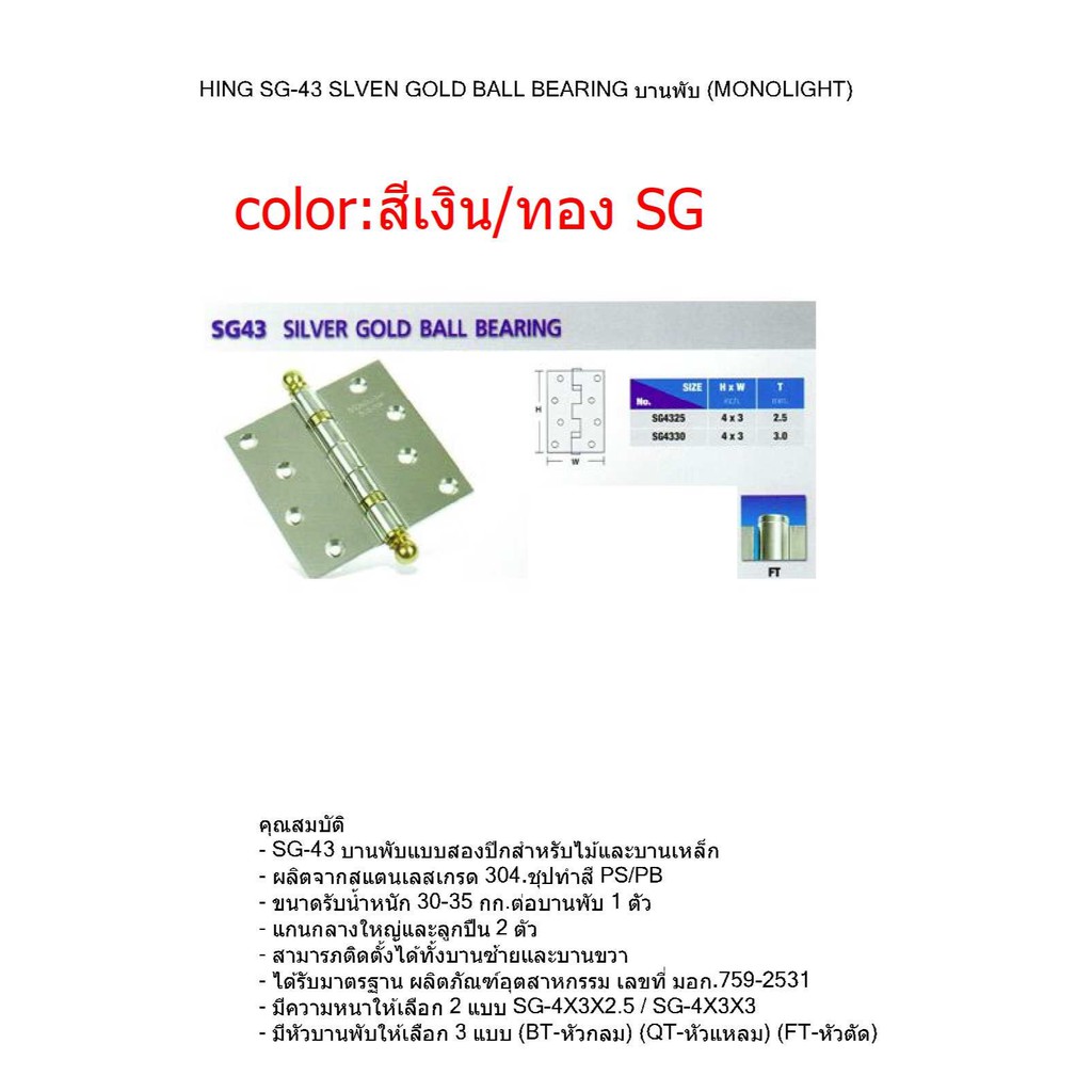 ็HINGES บานพับประตู SS43 STAINLESS STEEL BALL BEARING รูปทรงหัวตัด VVP