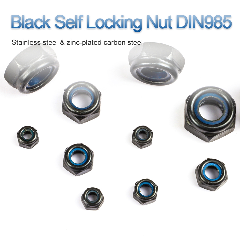 NINDEJIN 3/40pcs M3/M4/M5/M6/M8/M10/M12 ไนลอนสีดำล็อคอ่อนนุช 304 สแตนเลสชุบสังกะสีน็อตล็อคตัวเองหกเหลี่ยมน็อตล็อค