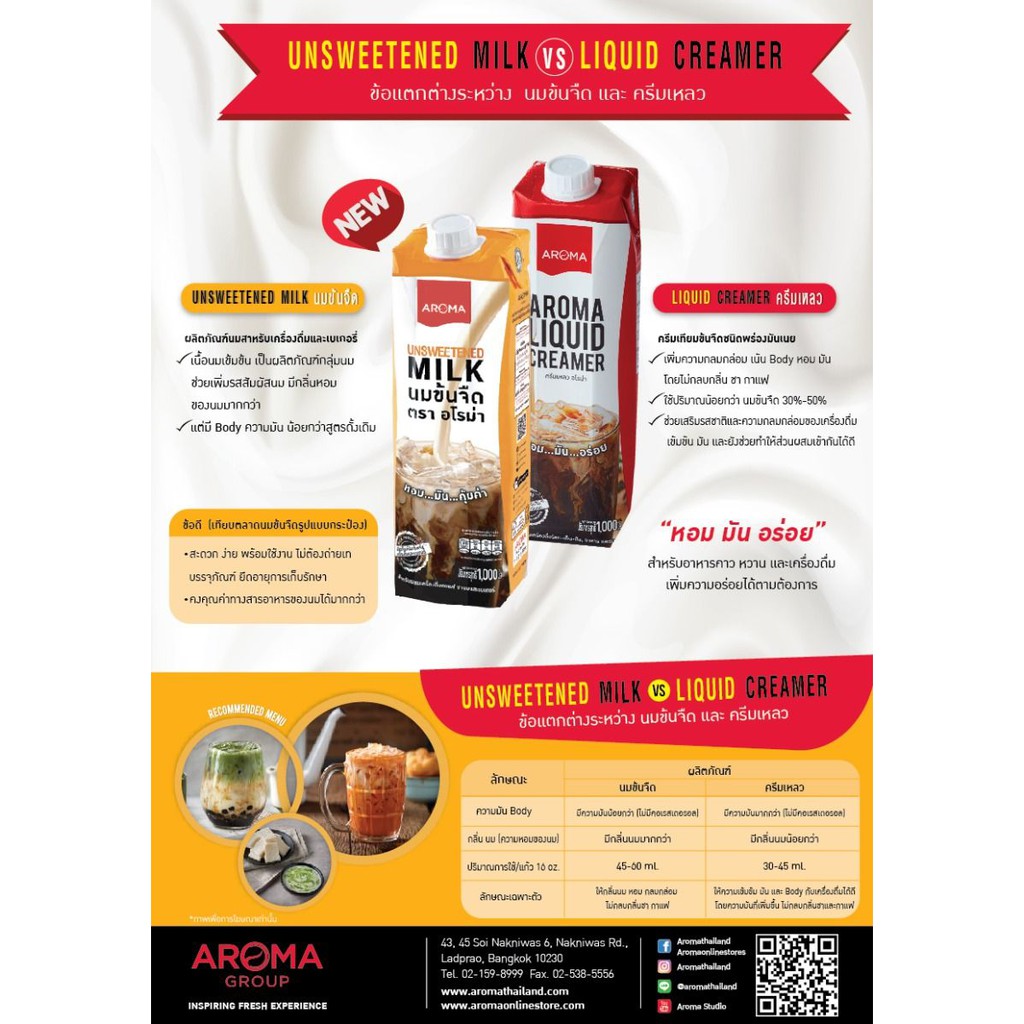 Aroma ครีมเหลว อโรม่า (ครีมเทียมข้นจืด ชนิดพร่องมันเนย) (Aroma Liquid Creamer) (1,000 มล./1 กล