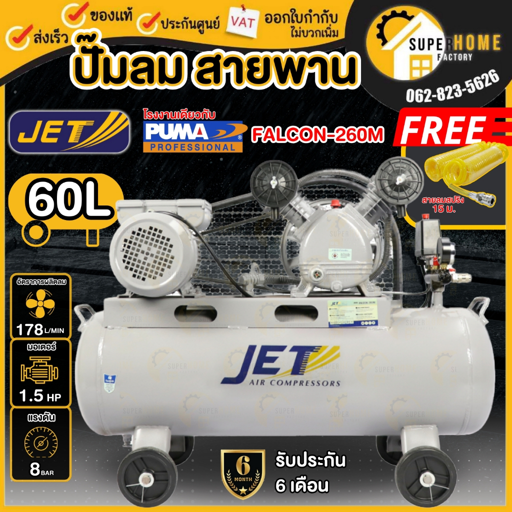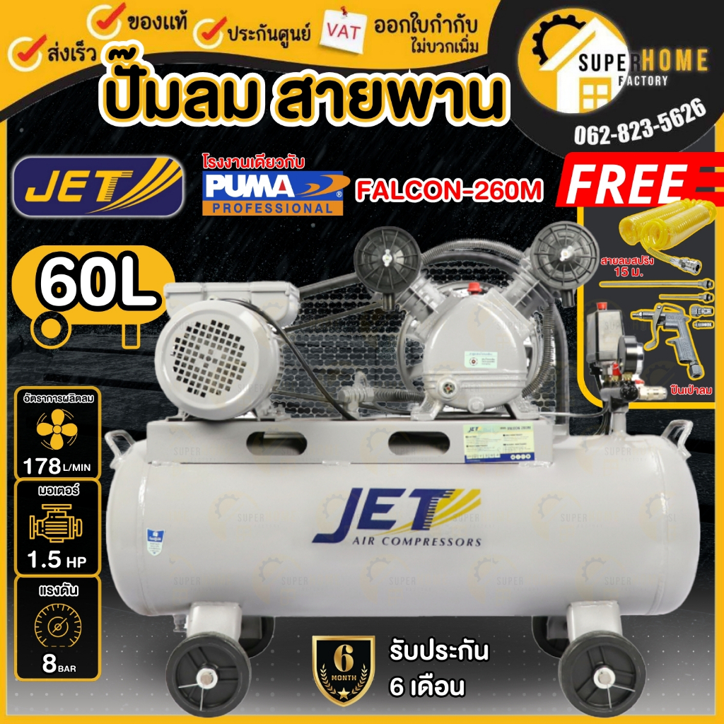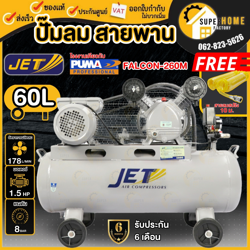 💥แท้ ส่งด่วน💥JET ปั๊มลมสายพาน รุ่น FALCON-260M ขนาด 60 ลิตร ถังเท่า 70 ลิตร ปั๊มลม ปั๊มลมไฟฟ้า ปั้มลมสายพาน ปั้มลม