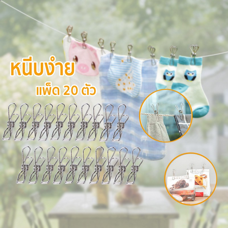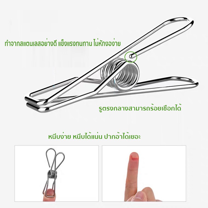ที่หนีบผ้าสแตนเลส คลิป ตัว ที่ คลิป ขดลวด จำนวน 20/แพ็ค (ยาว 4.5 ซม หนา2mm)