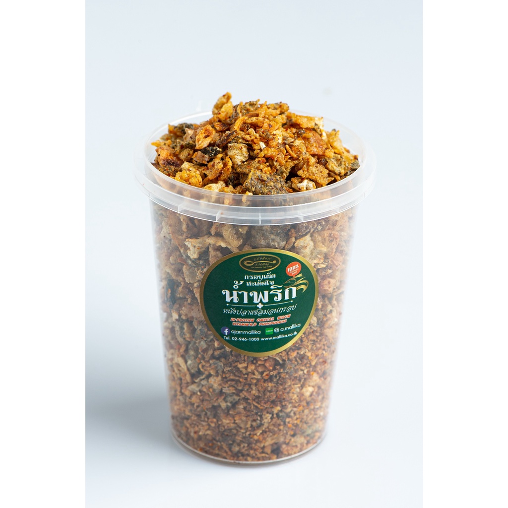น้ำพริกหนังปลาแซลมอนกรอบ โดย อ.มัลลิการ์ แพ็คเกจสุดคุ้ม 180 กรัม กรอบ อร่อย แซ่บ นัว ไม่อมน้ำมัน ไม่เหม็นหืน