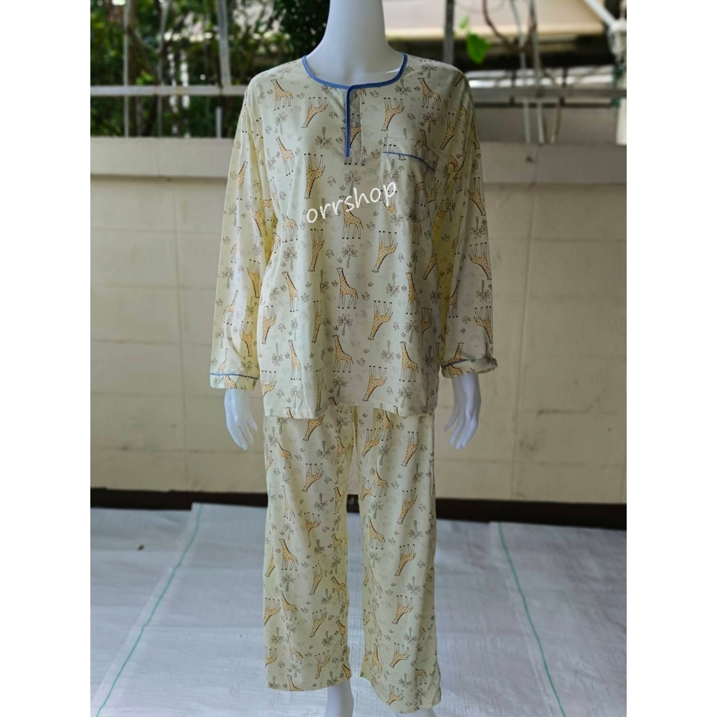 ชุดนอนผู้ใหญ่ ไซส์ฟรีไซส์ F แขนยาว ขายาว แบบคอกลม กระดุม 2 เม็ด