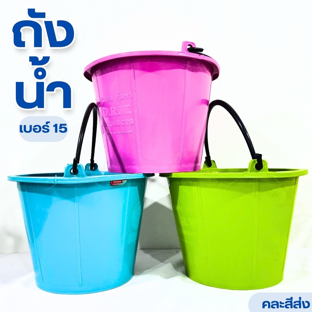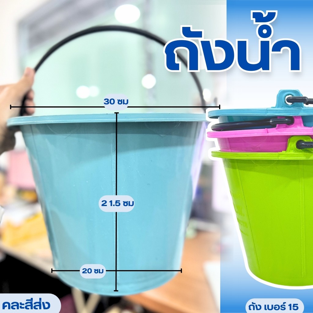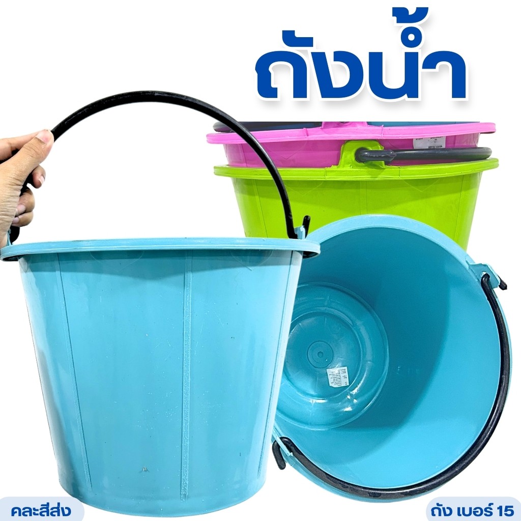 ถังน้ำ ถังสีหวาน ถังปูน ถังน้ำพลาสติก ถังมีหูหิ้ว เบอร์15 พลาสติกเหนียว ทนทาน จุน้ำได้ 8 ลิตร คละสี