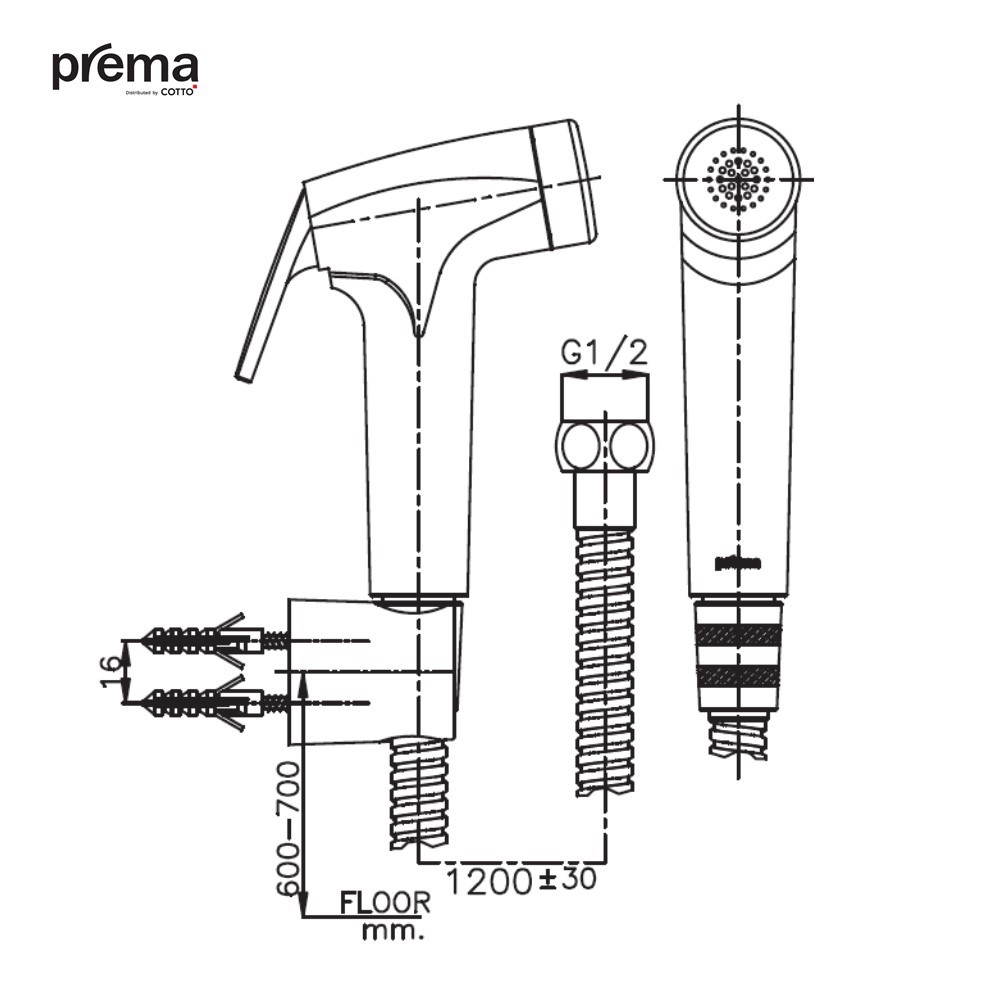 PREMA สายฉีดชำระ รุ่น PM6002K#CR(HM) CHROMIUM