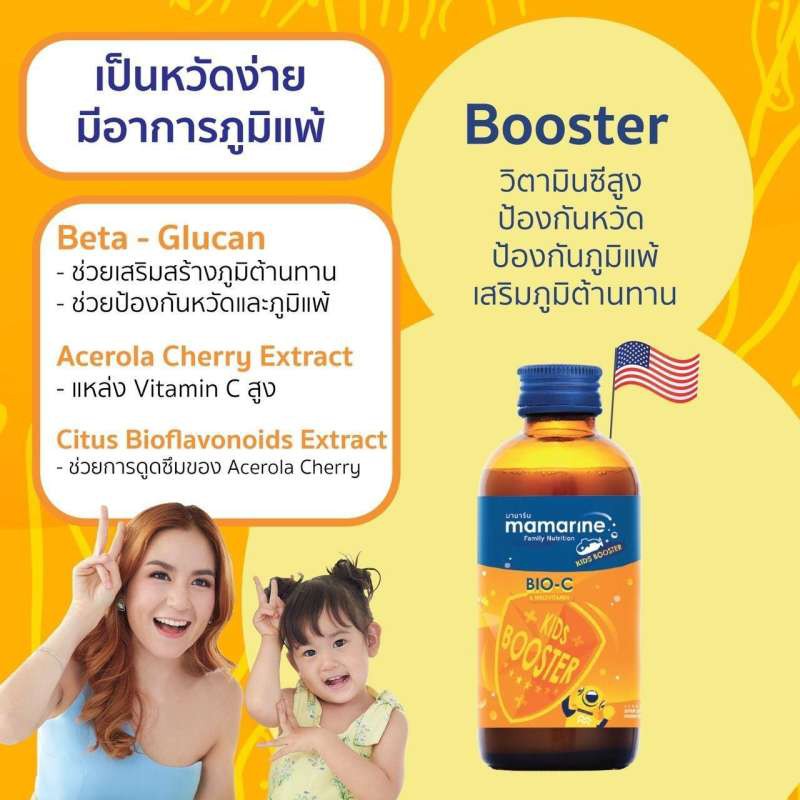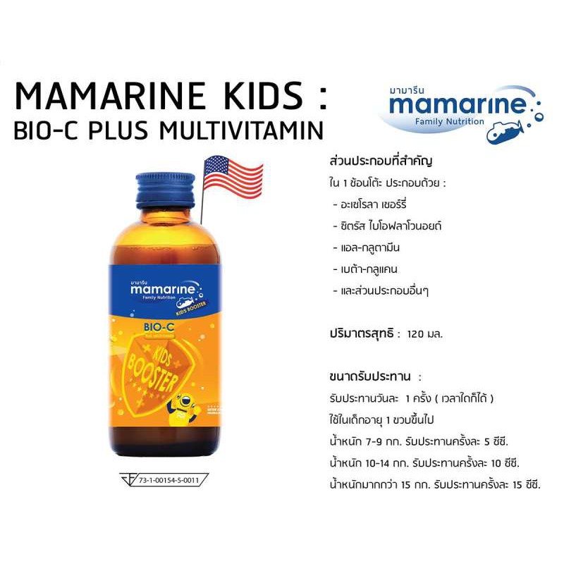 Mamarine Bio-C Plus Multivitamin มามารีน สีส้ม [120 ml.] ป้องกันหวัด ป้องกันภูมิแพ้ เสริมภูมิต้านทาน
