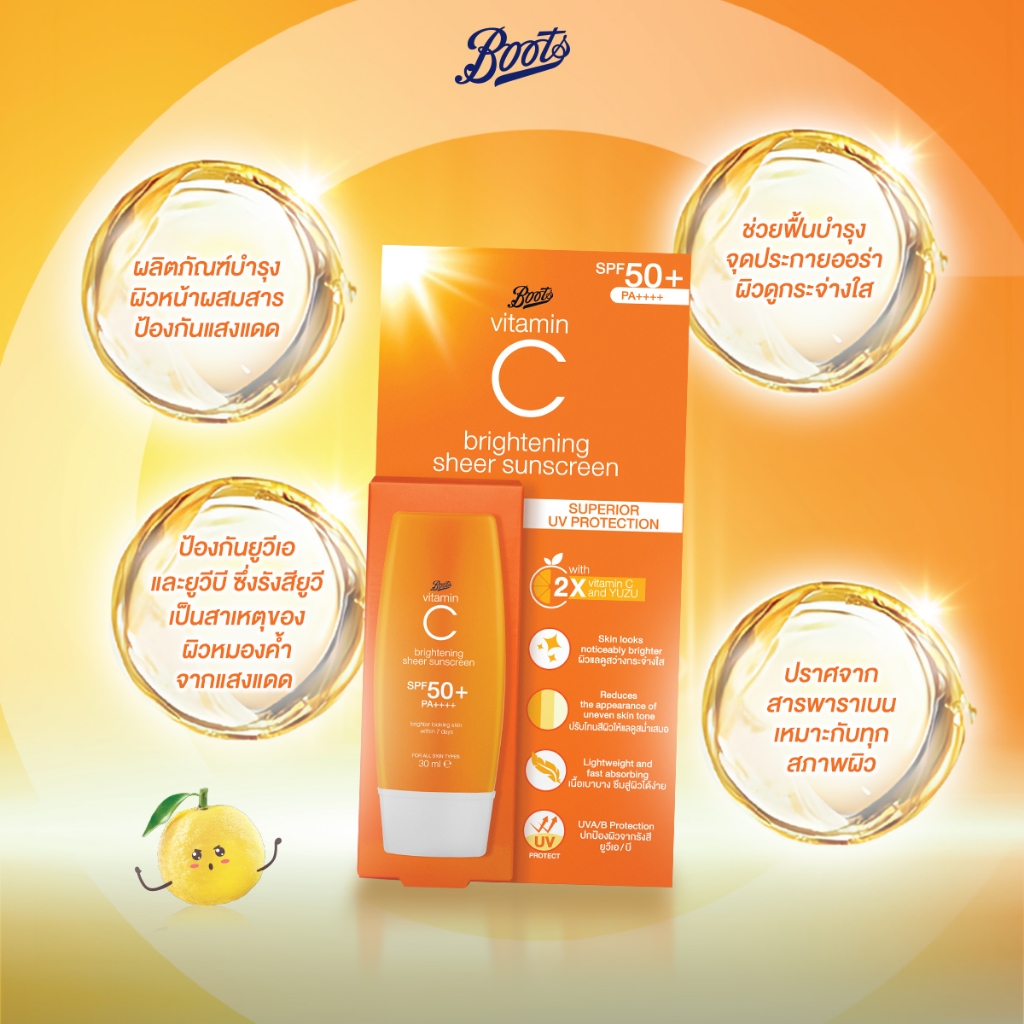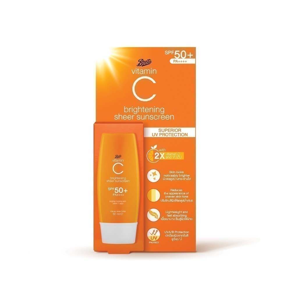 Boots Vitamin C Brightening Sheer Sunscreen Spf50+ Pa++++ 30Ml บู๊ทส์ วิตามิน ซี ไบรท์เทนนิ่ง เชียร์ กันแดด