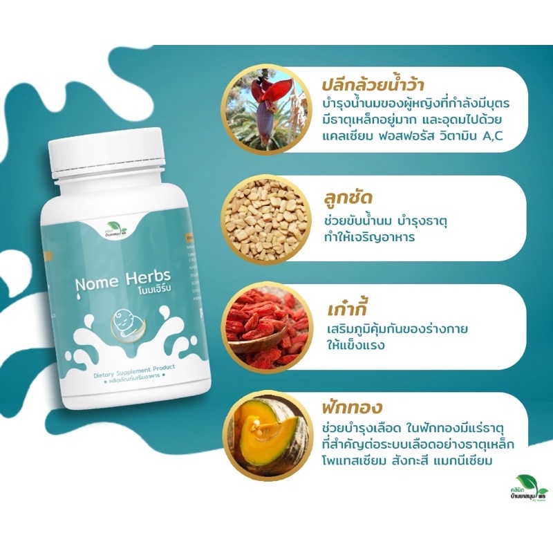 สมุนไพรบำรุงน้ำนม โนมเฮิร์บ (Nome Herb) กู้น้ำนม บำรุงน้ำนม เพิ่มน้ำนม ประสะน้ำนม น้ำนมข้นขึ้น ทำสต๊อกนม ปั๊มนม