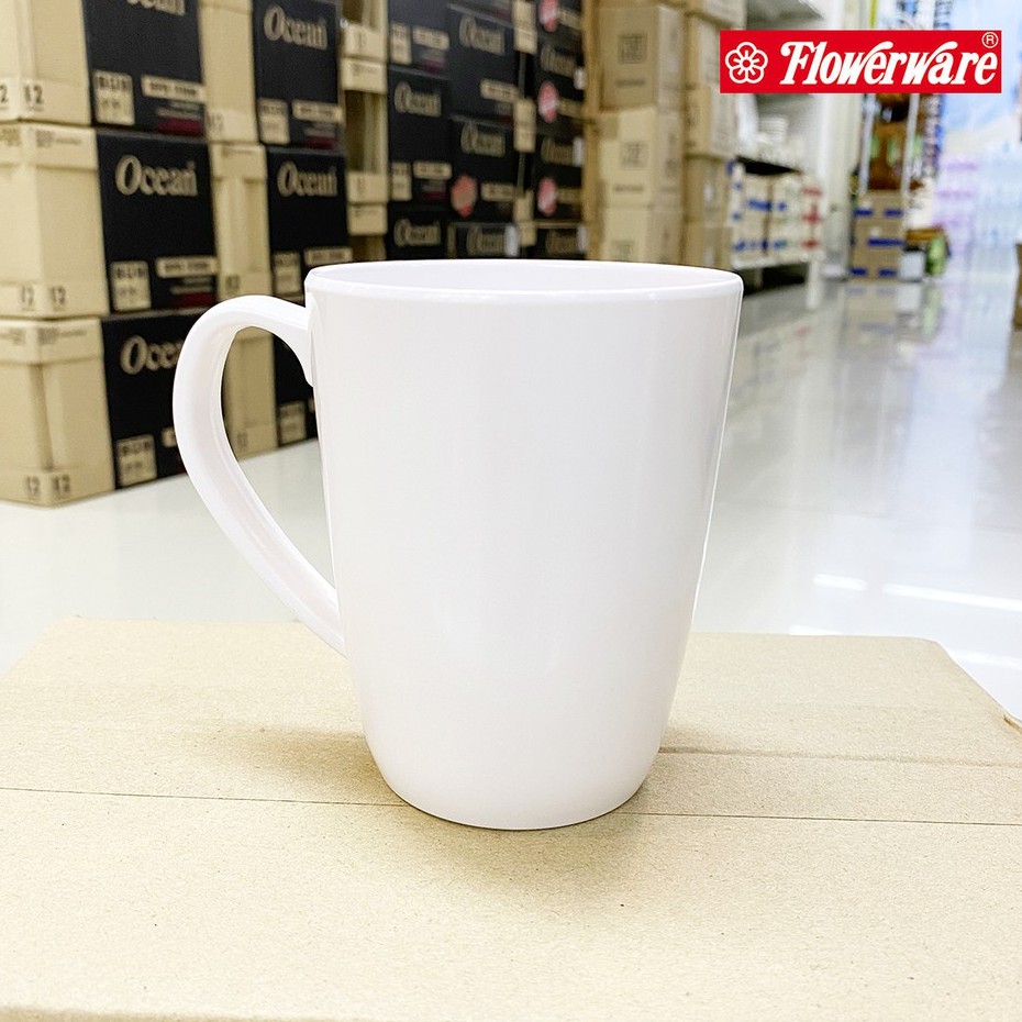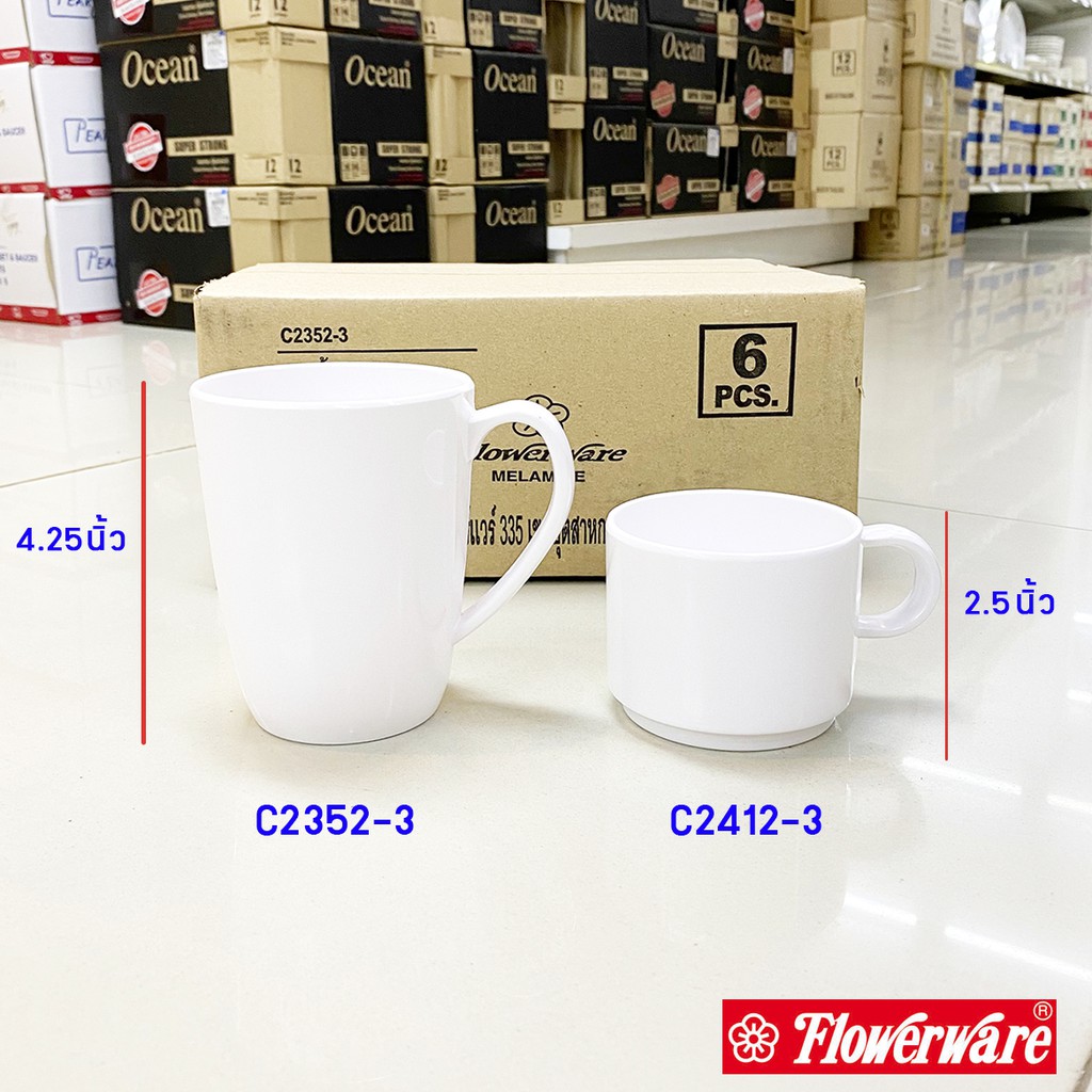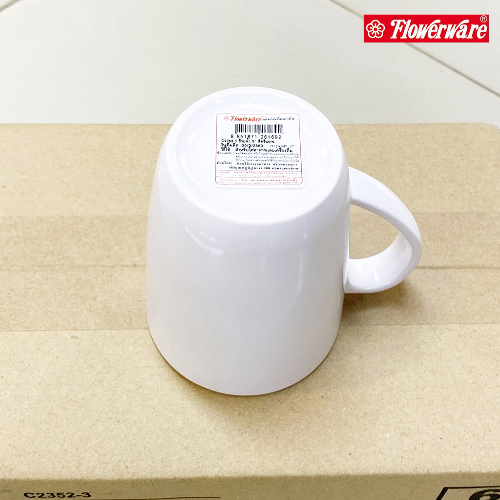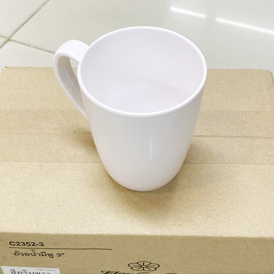 [1ใบ] แก้วกาแฟเมลามีน แก้วมัค สีครีมขาว Flowerware C2352-3