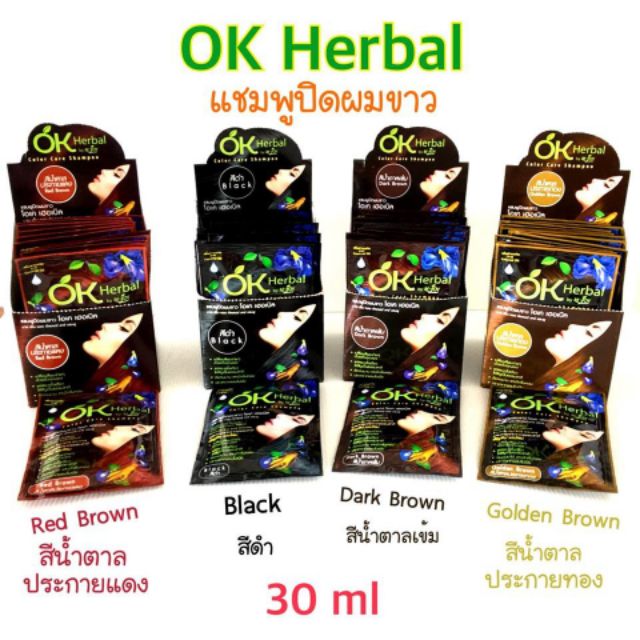 แชมพูปิดผมขาว โอเค มีครบ4สี OK Herbal Shampoo