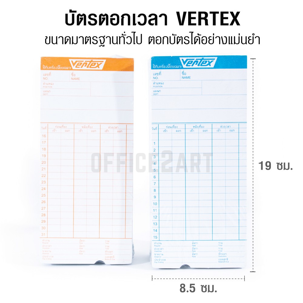 VERTEX บัตรตอกเวลา (แพ็ค 100 ใบ) สำหรับ เครื่องตอกบัตร Vertex บัตรตอก เวอร์เทค