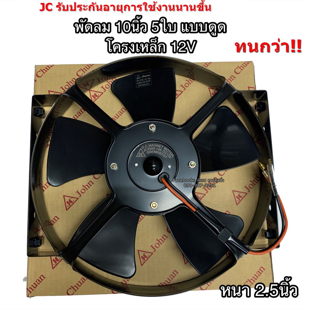 พัดลมระบายร้อน (แบบดูด) แผงแอร์ 10นิ้ว5ใบ 12V เสริมแอร์ (JohnChuan 2500-12E) เป่าแผง หม้อน้ำ หนา 2.5นิ้ว