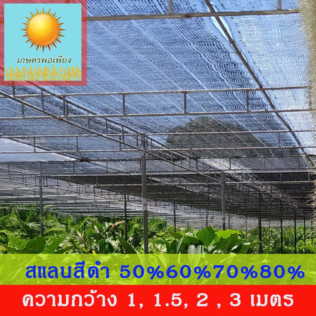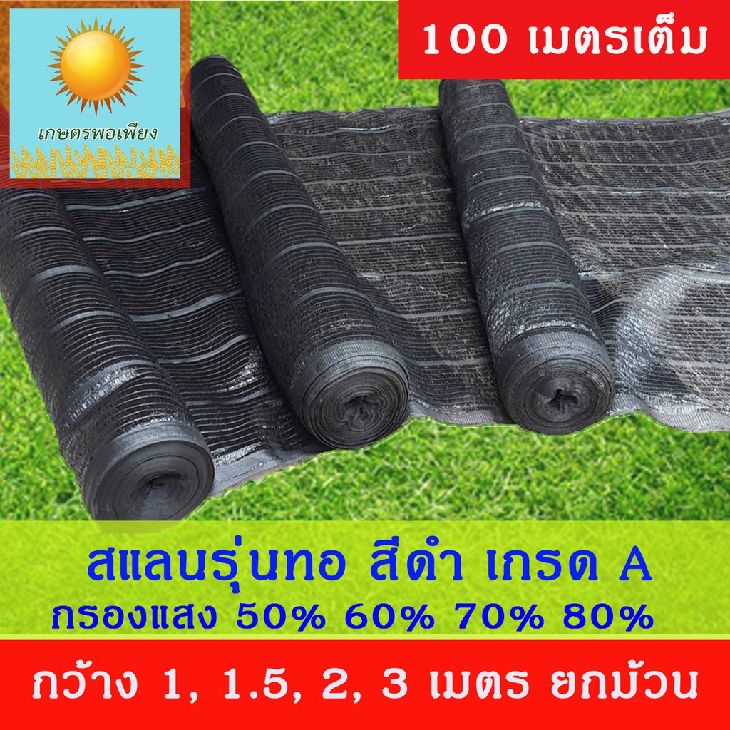 สแลนสีดำ ทอ 1 เข็ม ความกว้าง 1, 1.5, 2, 3 เมตร ยกม้วน ยาว 100 เมตร กรองแสง 50%, 60%, 70%, 80%