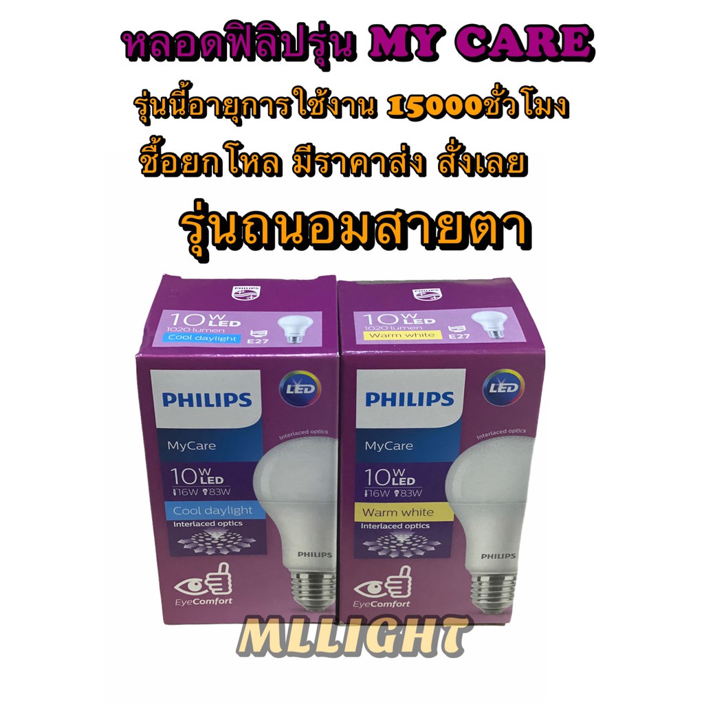 Philips LED Bulb MyCare 10W หลอดไฟ ฟิลิปส์ 10วัตต์ ขั้ว E27 หลอดLED ถนอมสายตา แสงขาว 6500K แสงวอร์มไวท์ 3000K