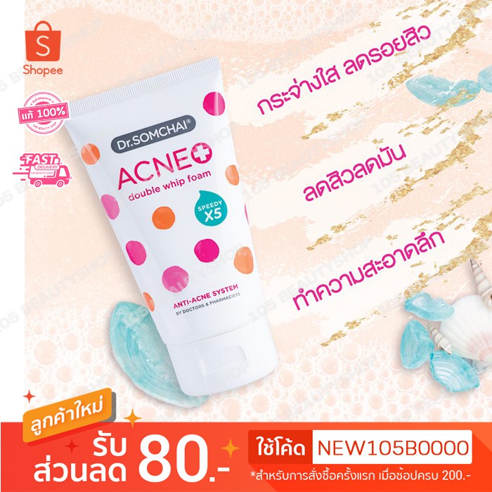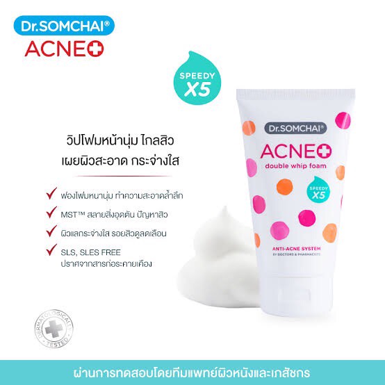 Dr.somchai acne double whip Foam SpeedyX5 โฟมลดปัญหาสิวความมัน ดร.สมชาย แอคเน่ดับเบิ้ลซิปโฟม ( ขนาด 100 กรัม )