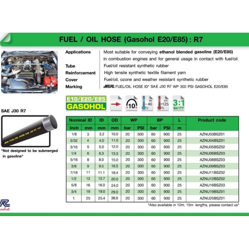 (ราคา/50ซม.)สายน้ำมันนอกถังอย่างดี R7 NCR แท้ รองรับน้ำมันแก๊สโซฮอล์ เบนซิน ดีเซล มาตรฐานSAE J30