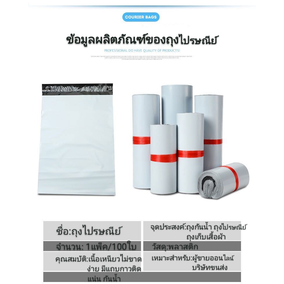 (ถูกที่สุด)(แพ็ค100ใบ) ซองไปรษณีย์พลาสติก แถบกาว สีขาว รวมไซส์ ซองพัสดุ ถุงพัสดุ ถุงไปรษณีย์