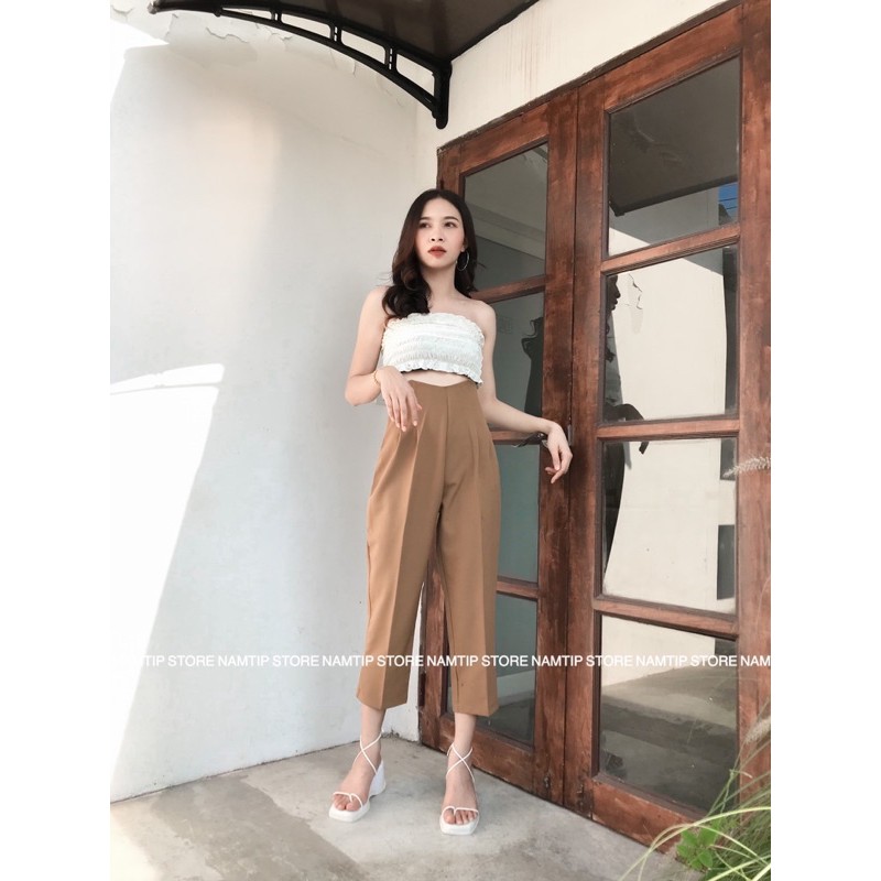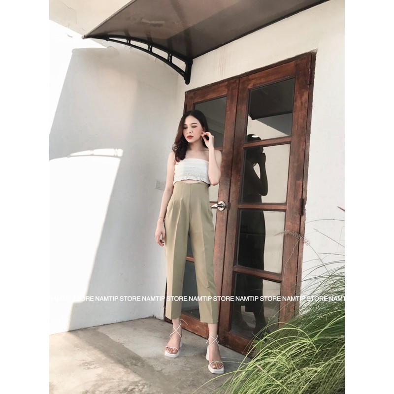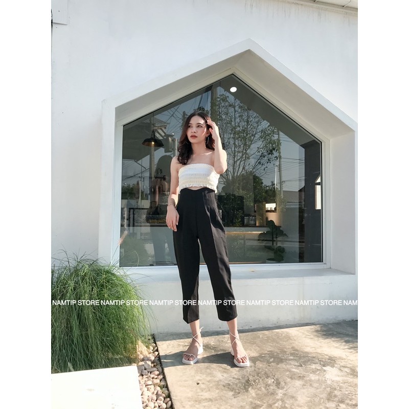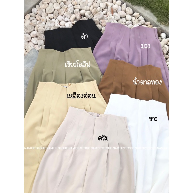 กางเกงขอบโค้งผ้าเป้เป้งานขากระบอกเล็กซิปหลัง✨🍯🧺