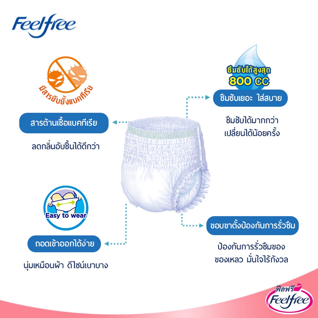 [ขายยกลัง] Feelfreeผ้าอ้อมผู้ใหญ่ฟีลฟรีแบบกางเกง ไซส์ S-M 20ชิ้น*4แพ็ค ซึมซับมากพิเศษ 800CC #C92164