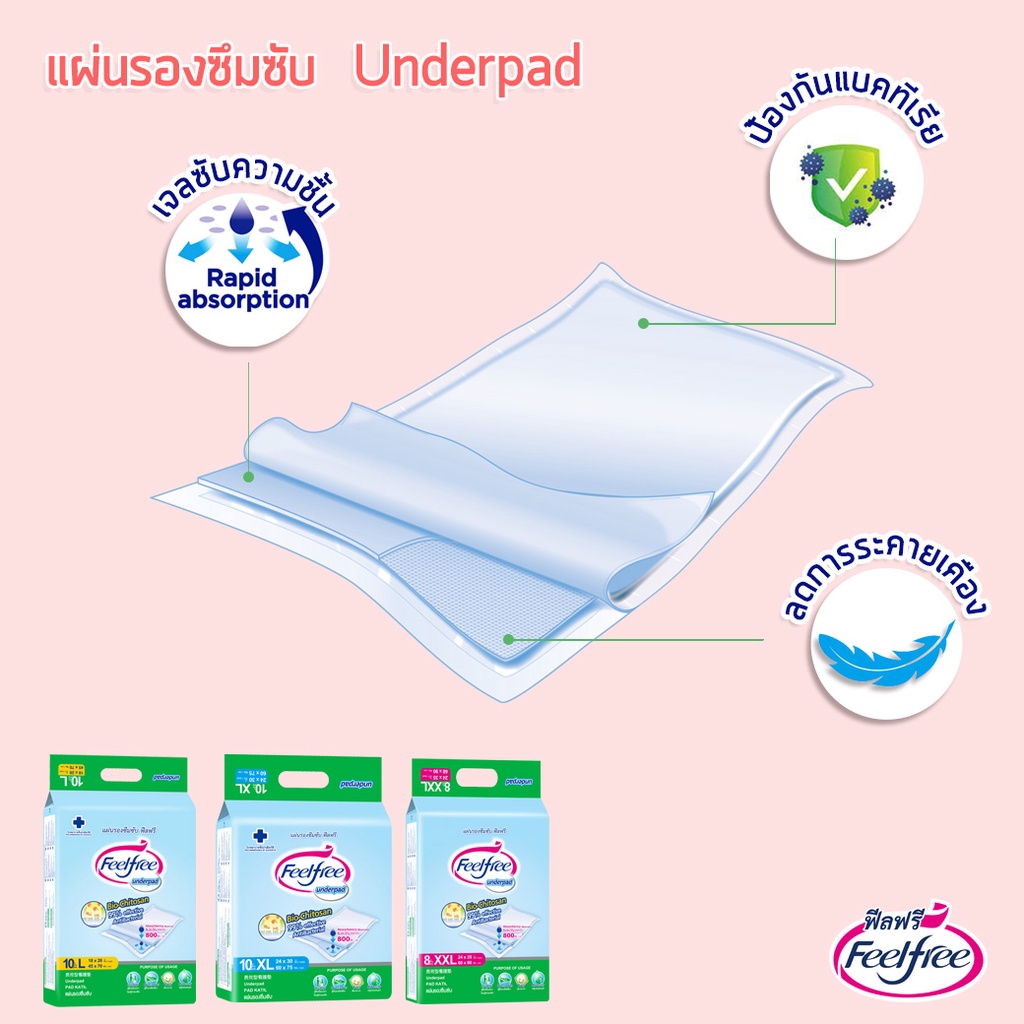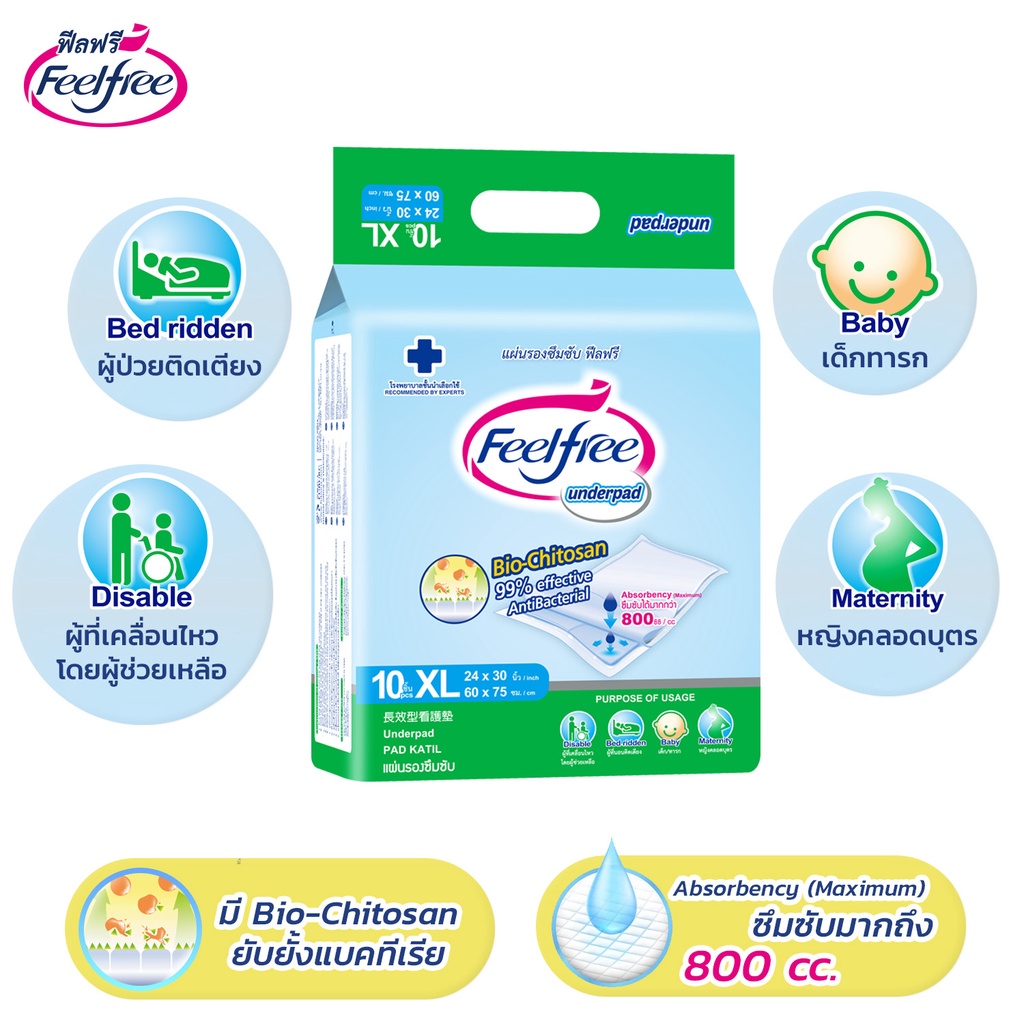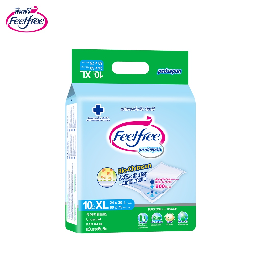 [ขายยกลัง] Feelfree แผ่นรองซับฟีลฟรี ไซส์ XL10ชิ้น*12 แพ็ค ซึมซับมาก 800CC #A923132